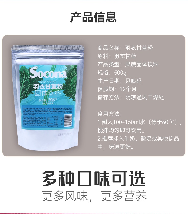 SOCONA Чистый порошок капусты 500 г * 2 мешка фруктового и овощного порошка пищевые волокна Напойте зеленый сок, питательный фитнес-заменитель
