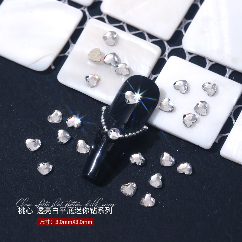 Дизайн ногтей с бриллиантами на плоской подошве, дно специальной формы, бриллиантовое белое сердце, красочное персиковое сердце, стразы k9, стекло, День святого Валентина, ювелирные изделия для дизайна ногтей, оптовая продажа