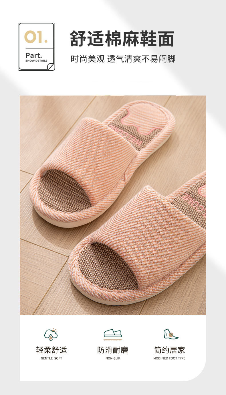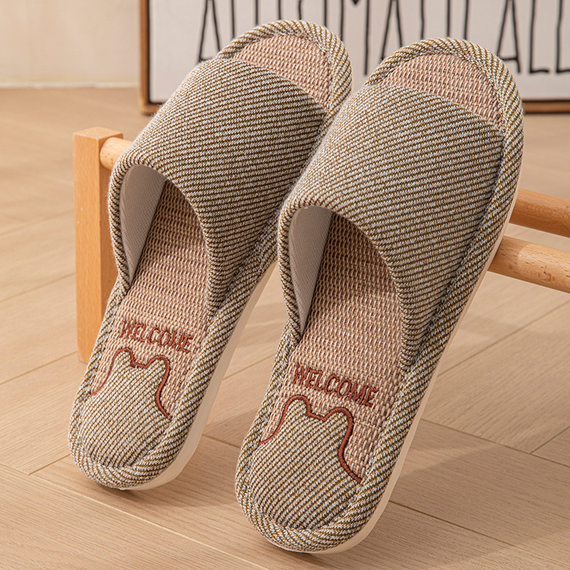 Дышащие льняные тапочки для мужчин, для дома, нескользящая мягкая подошва, весенне-осенний сезон, бесшумная впитывающая пот обувь из хлопка и льна для женщин.