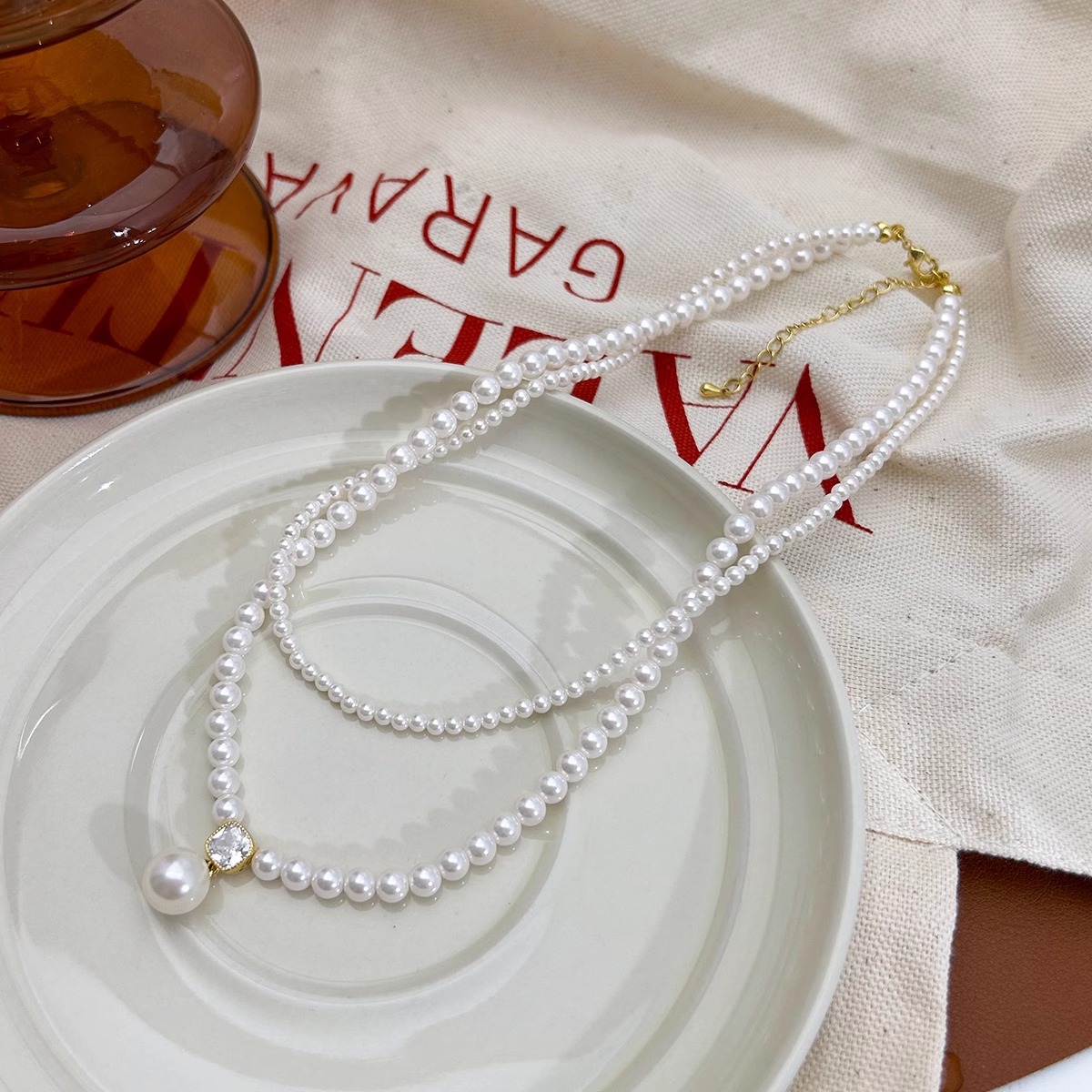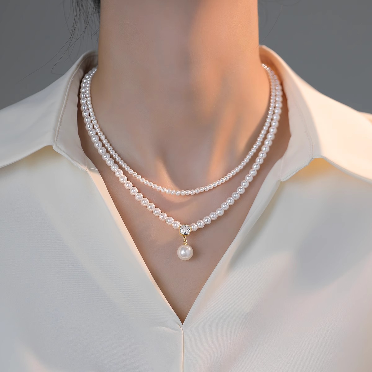 Двухслойная укладка Xiaomizhu, жемчужное ожерелье, женское легкое роскошное, нишевое шею, 2025 новая взрывная цепочка ключицы