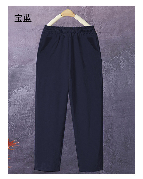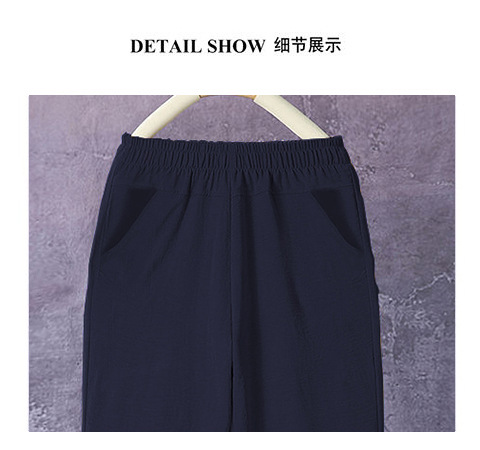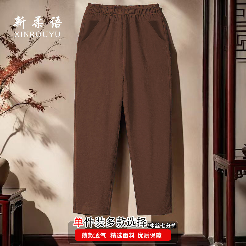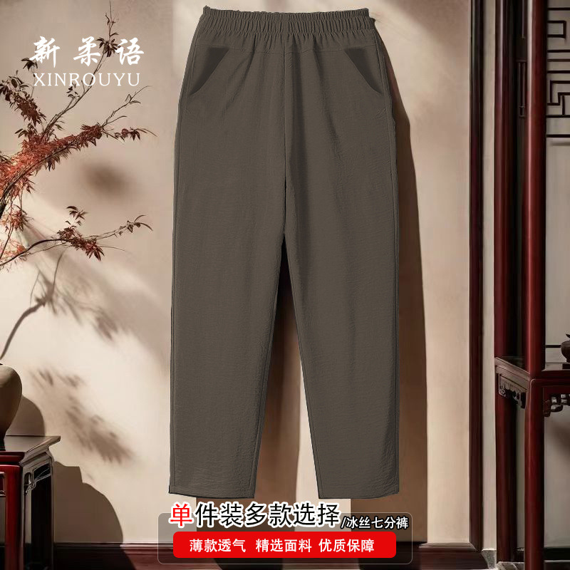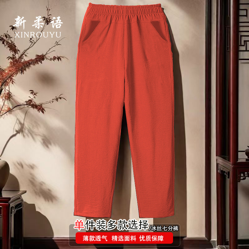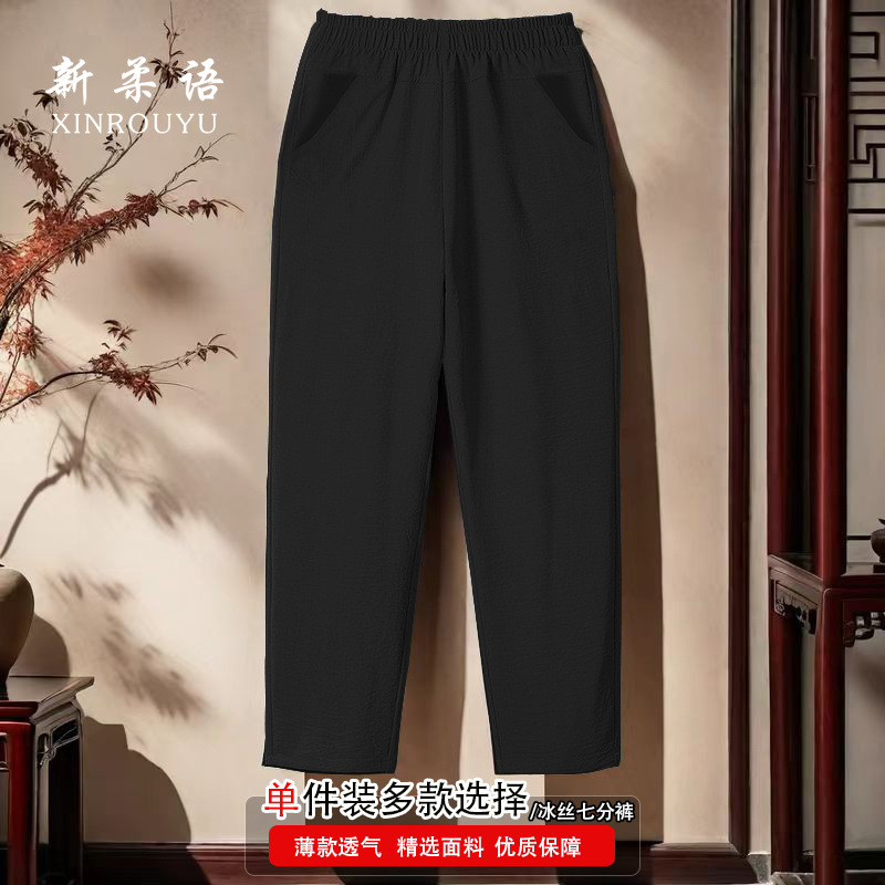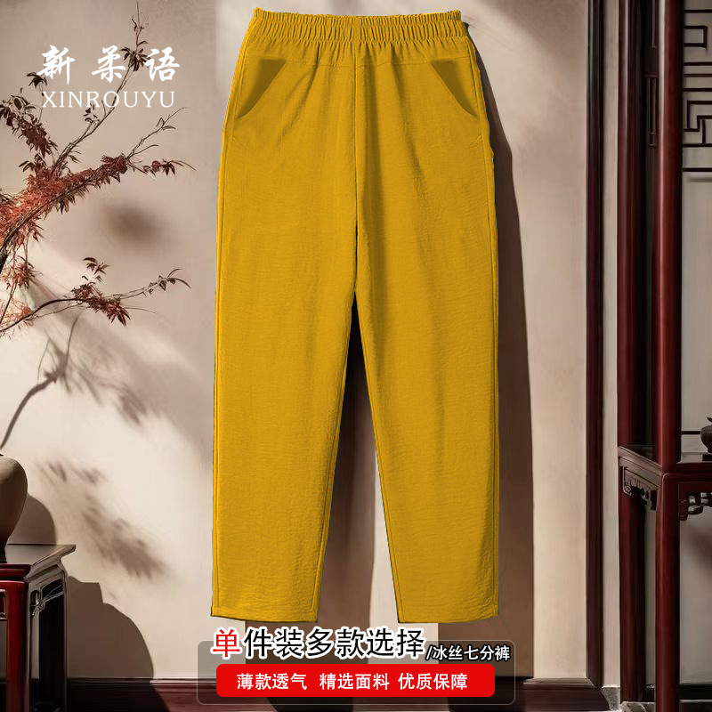 Летний тонкий ледяной шелк с высокой талией, свободные тонкие, укороченные брюки большого размера, женская толстая сестра, широкие ноги, простые модные шаровары