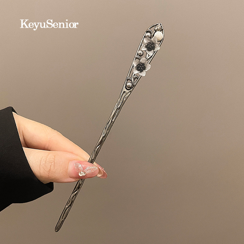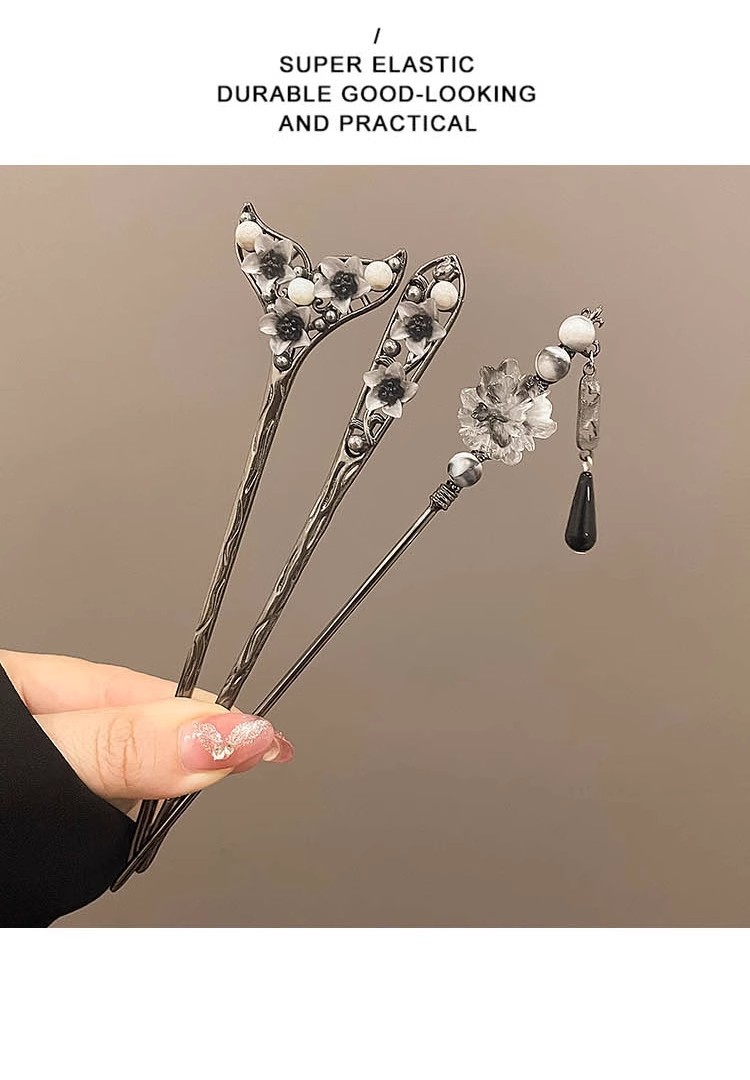 Заколка для волос с черным цветком в виде пистолета; Заколка U-образная с черным цветком в виде пистолета; Заколка для волос с цветком «рыбий хвост» черного цвета; Шпилька с цветком из чернил; Шпилька U-образной формы в форме веера черного цвета; Заколка для волос с кисточкой и тремя цветами