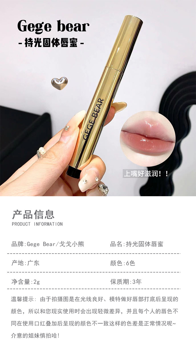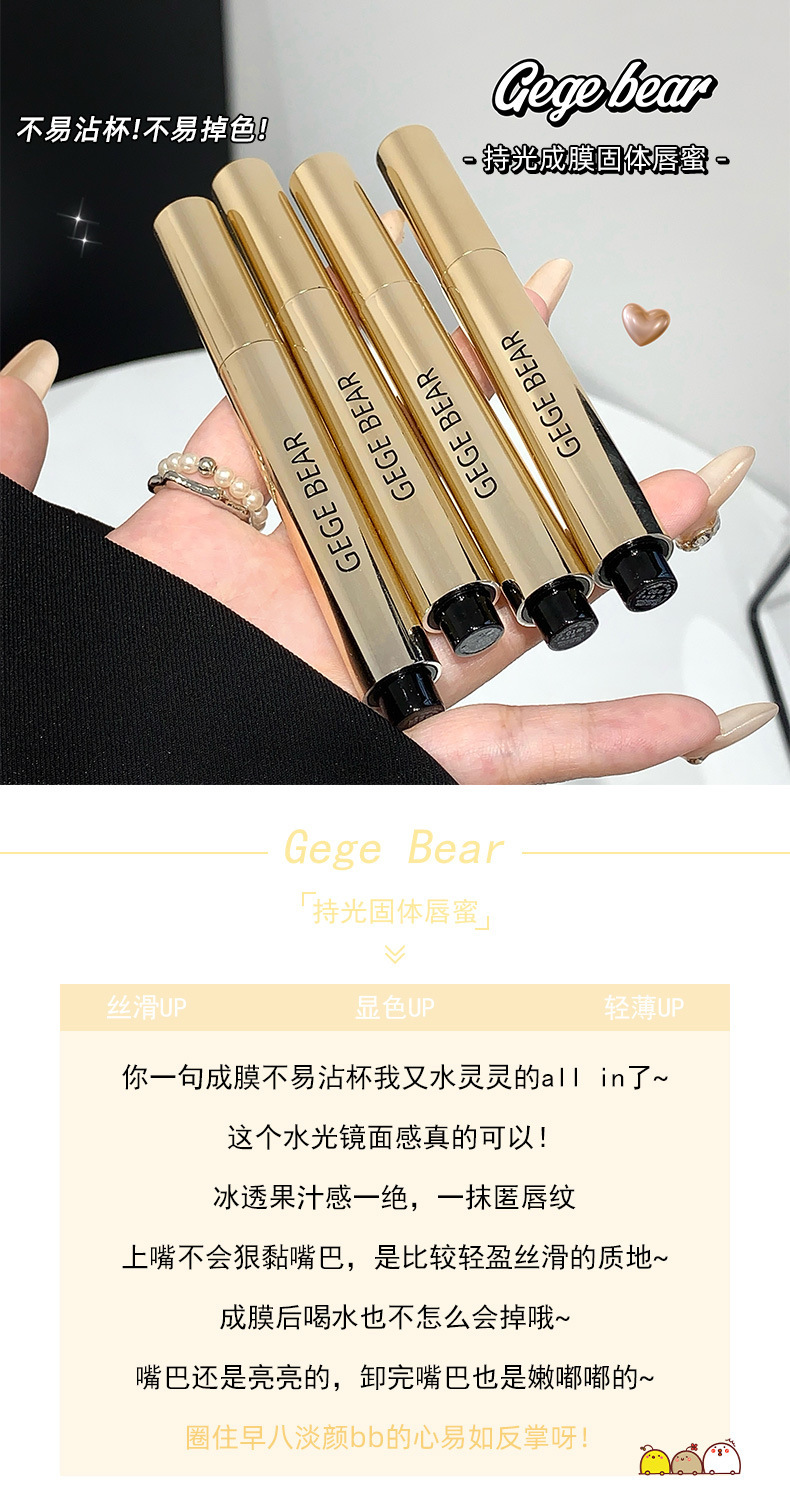 Gege bear Gogo маленький медведь держит свет твердый блеск для губ увлажняет желе губы с макияжем