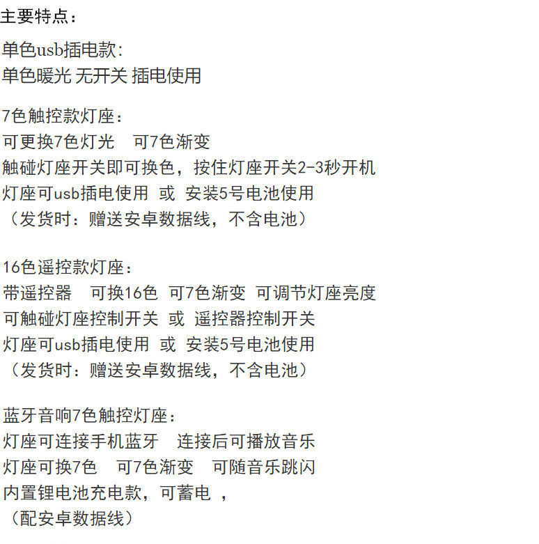 Монохромный держатель лампы с теплым светом, подключаемый через USB; Черный фон, 7-цветный сенсорный USB + батарейный отсек; Черный фон 16 цветов + пульт + USB + батарейный отсек; Белый фон, трещина, 7-цветный сенсорный USB + батарейный отсек; Белый фон треск 16 цветов + пульт дистанционного управления USB + батарейный отсек; (Перезаряжаемая модель) 7-цветный динамик Bluetooth