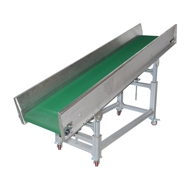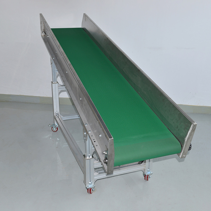 Мобильный ленточный конвейер на колесах для транспортировки под наклоном, производитель конвейеров с бортиками.