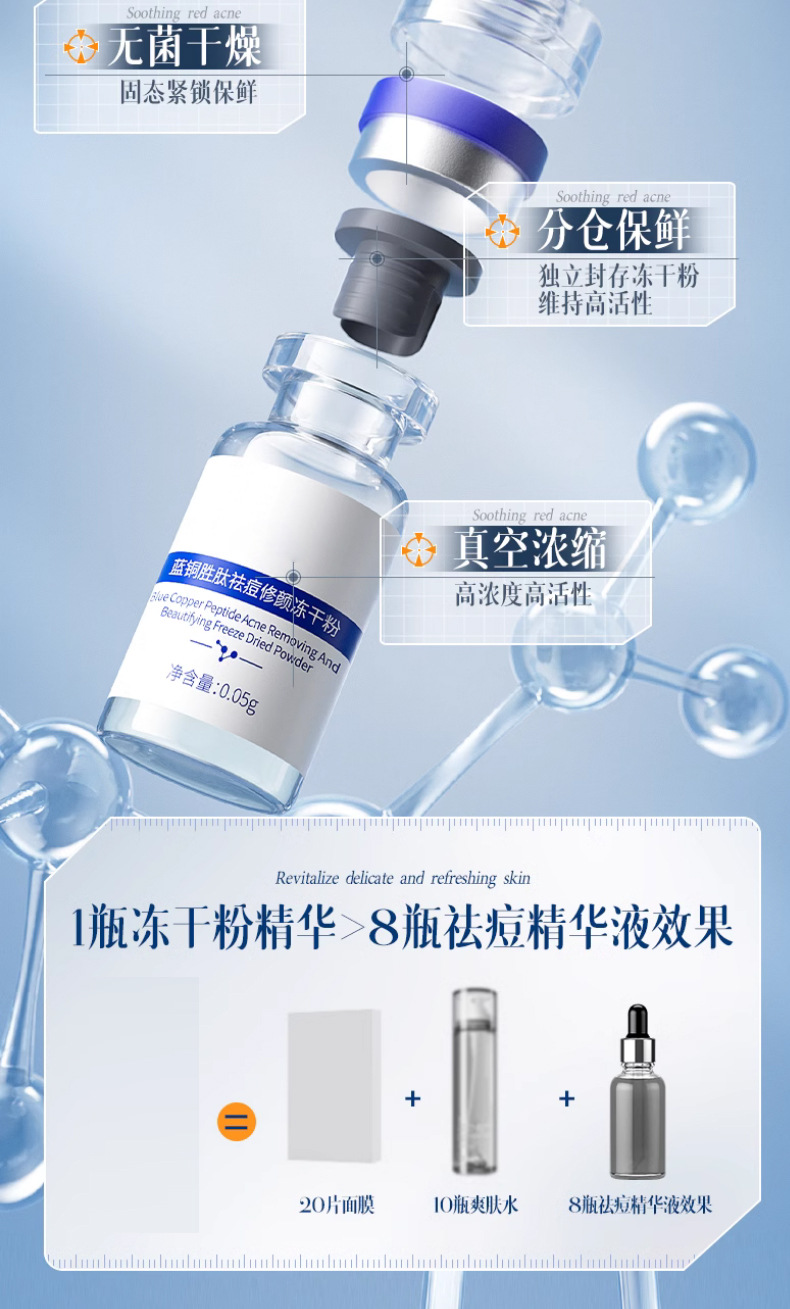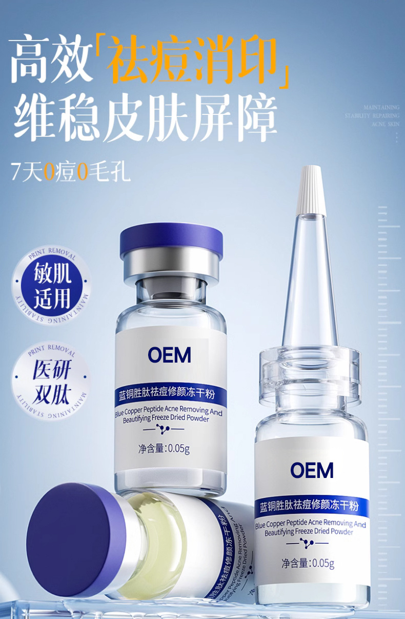 Xianghe Blue Copper Peptide Lyophilized Powder Восстанавливающая увлажняющая эссенция OEM Оптовая продажа Салон красоты Обработка лиофилизированного порошка Индивидуальная настройка