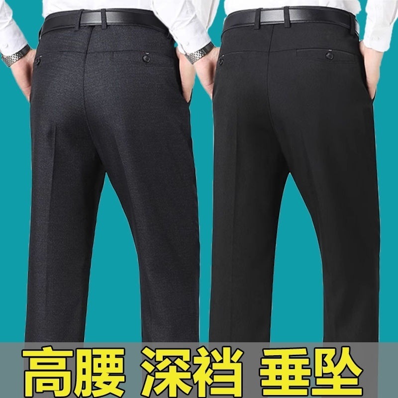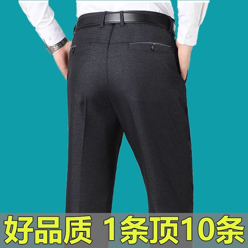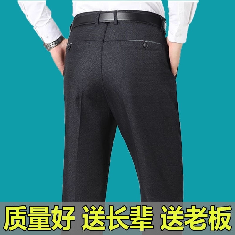 (Фабрика прямых продаж) Мужские брюки среднего возраста тонкие повседневные брюки прямые брюки свободные брюки с высокой талией против морщин