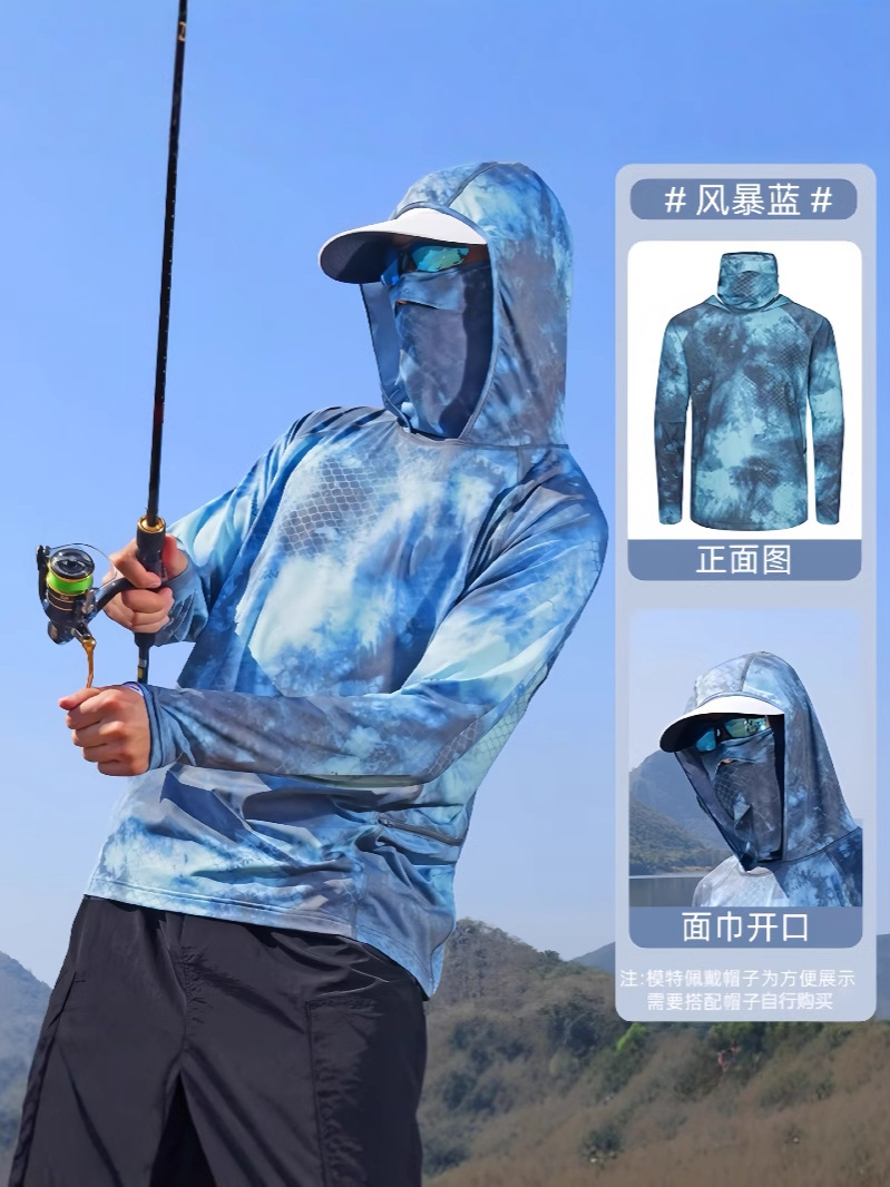 Камуфляжная рыболовная солнцезащитная одежда для мужчин, летняя ультратонкая одежда из ледяного шелка для лица, дышащая солнцезащитная одежда для рыбалки на открытом воздухе, анти-УФ-защита для мужчин