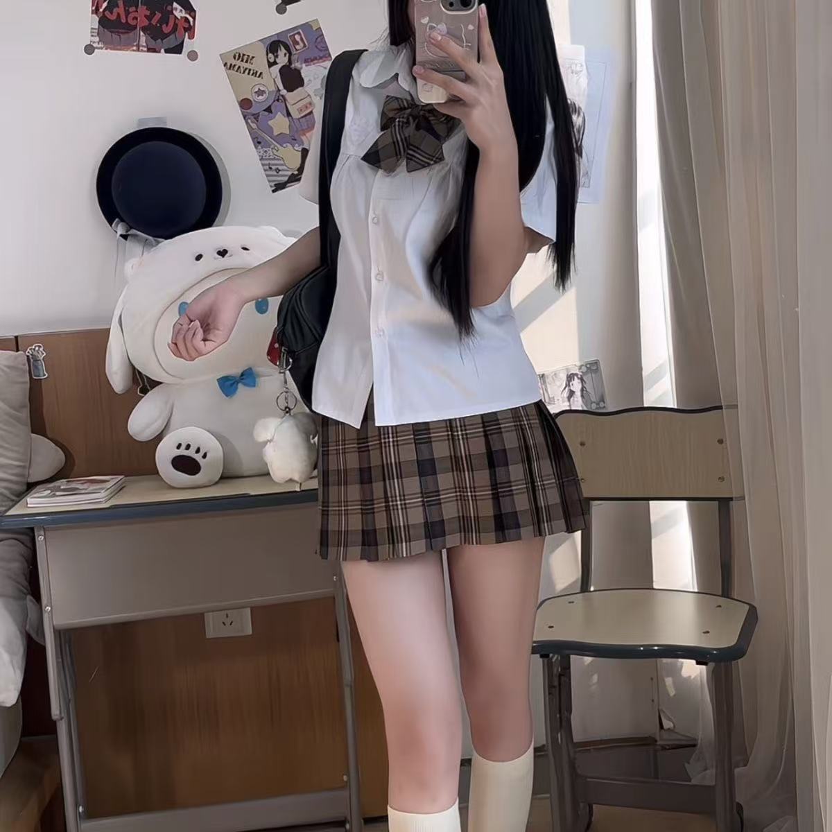 Популярный стиль [Little Brown Same Pattern] аутентичная униформа jk клетчатая юбка с таким же узором юбка в стиле преппи плиссированная юбка для похудения и морщинистая