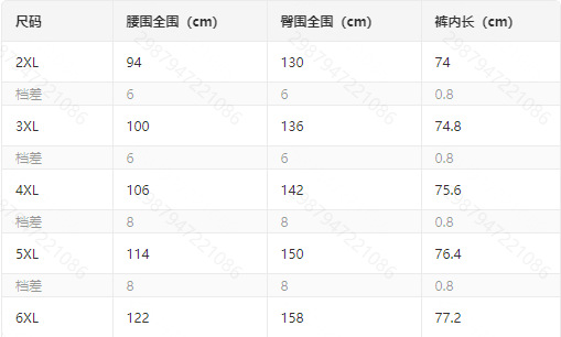 2XL; 3XL; 4XL; 5XL; 6XL