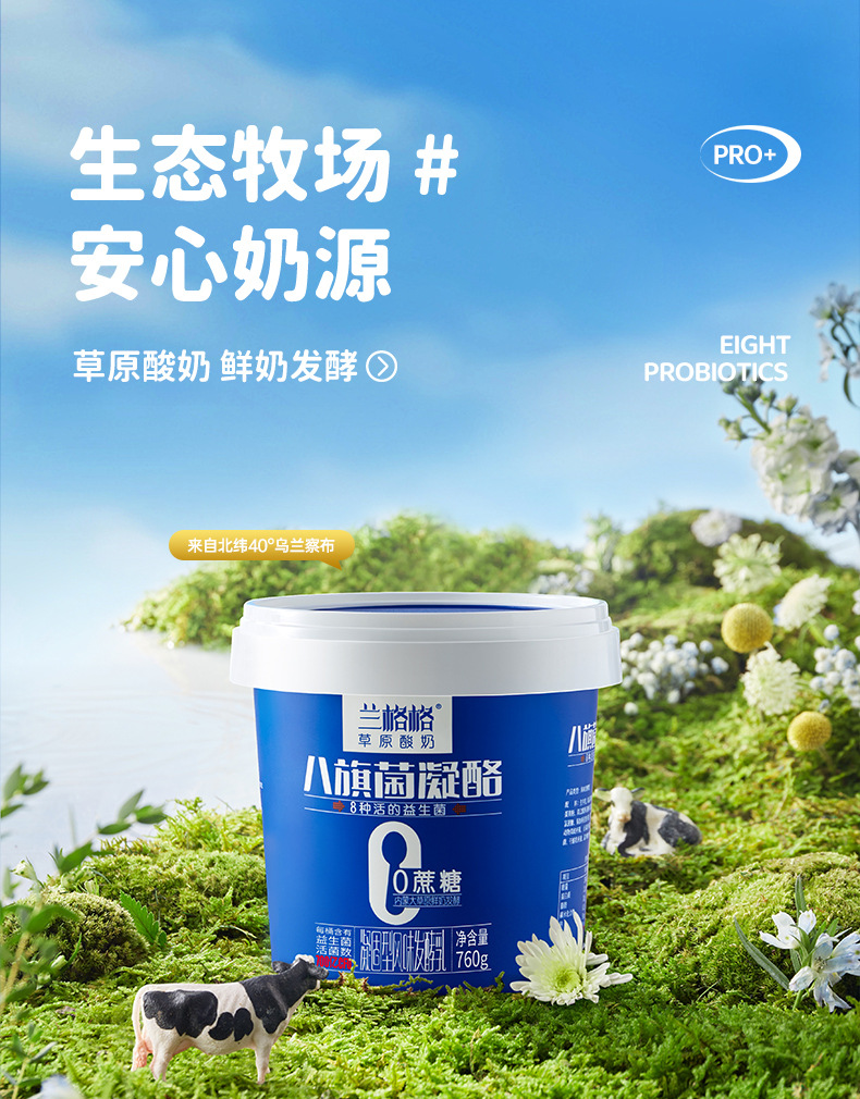 Йогурт конденсированный Langege из Внутренней Монголии с живыми бактериями, без сахара, 760 г * 2 банки, низкотемпературный - оптом