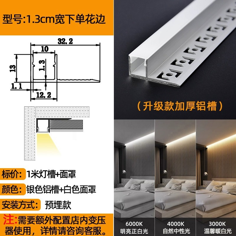 Цена 1m / Серебристый алюминий + белая крышка ПК; Цена 1m / Черный алюминий + черная крышка ПК