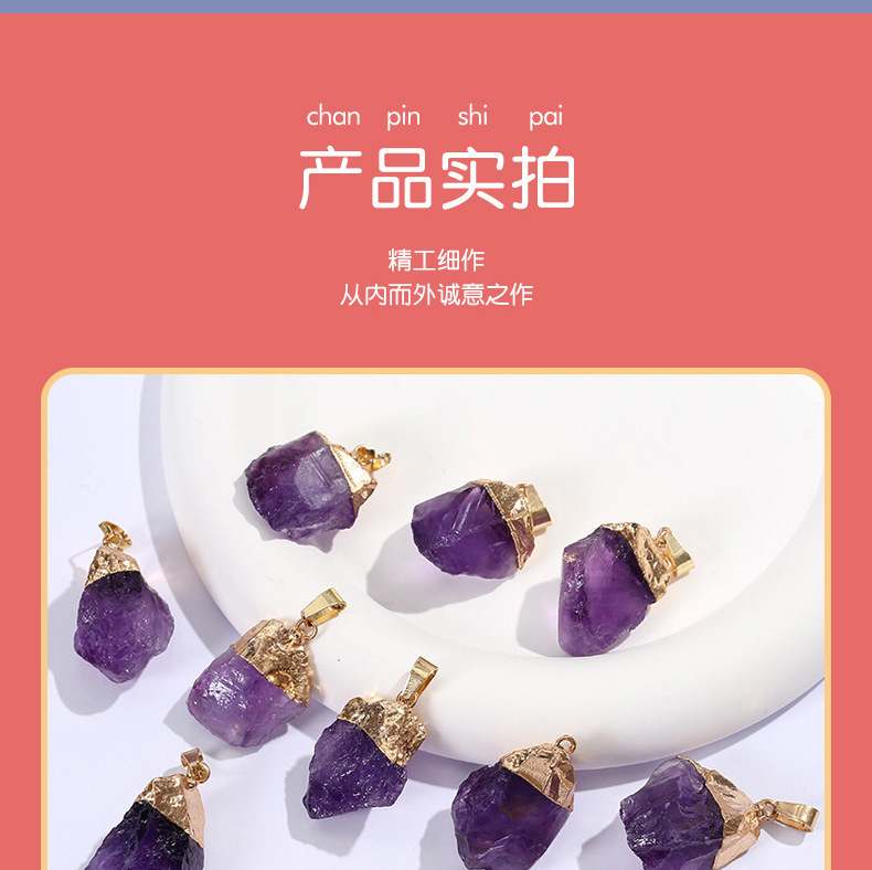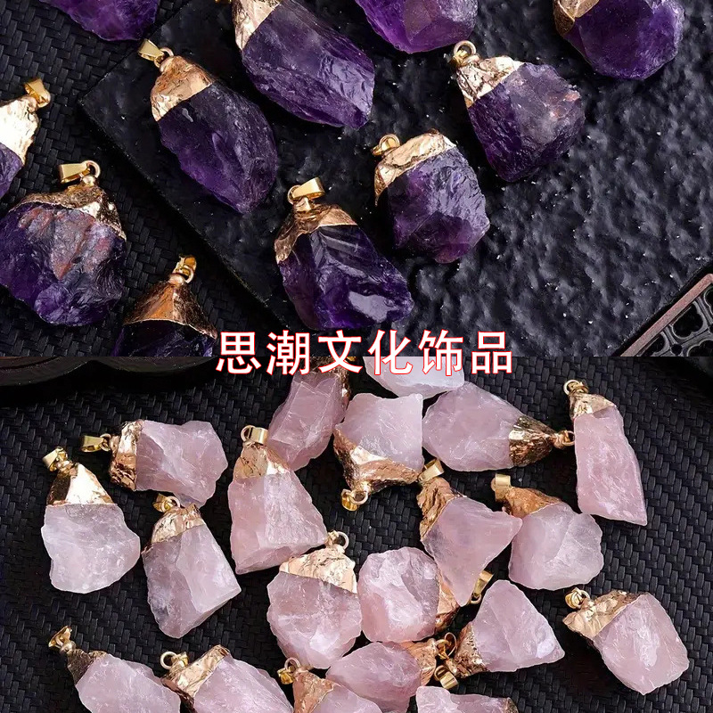 Натуральный аметист розовый кристалл нерегулярная чистая медная подвеска