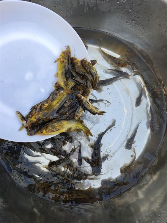 Желтая пряная жареная рыба кубиками, жареная желтая сомовая рыба, жареная желтая костная рыба, жареная желтая утиная рыба, желтая пресноводная культивированная съедобная живая рыба пангасиус.