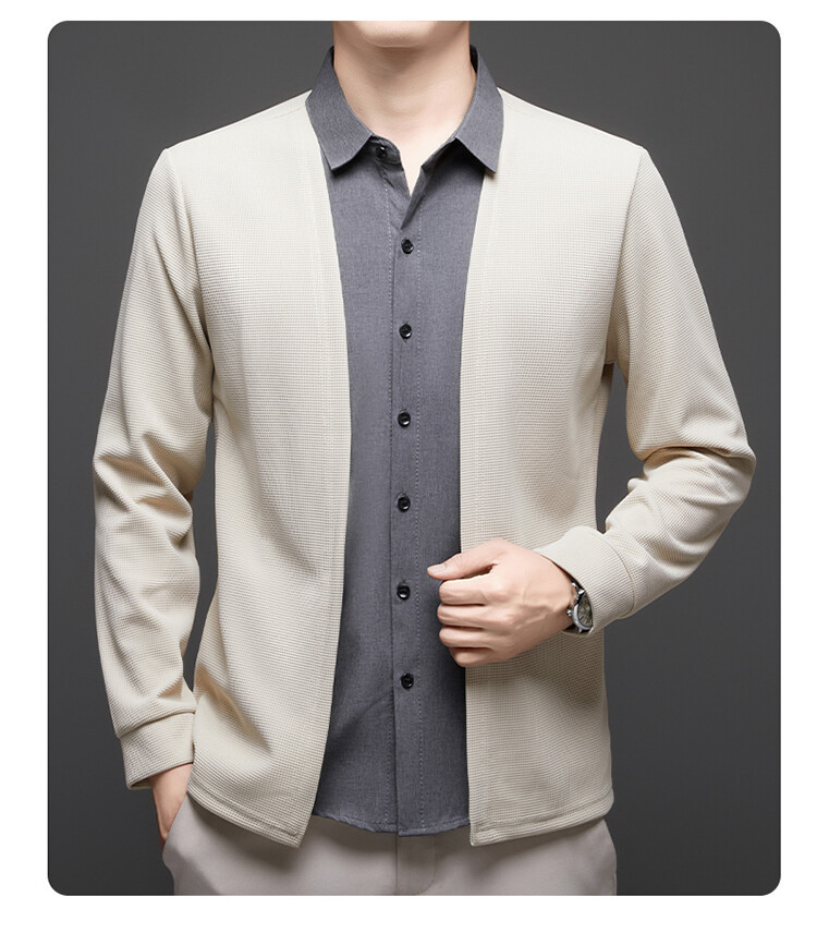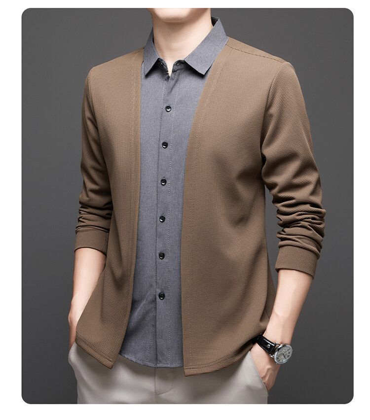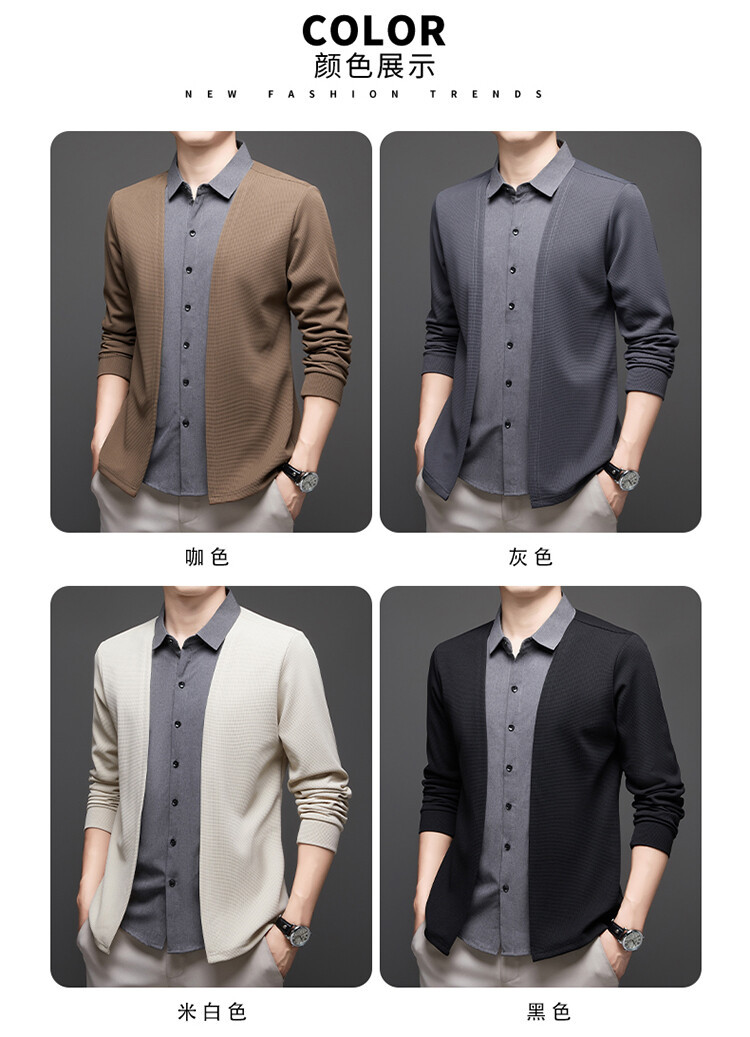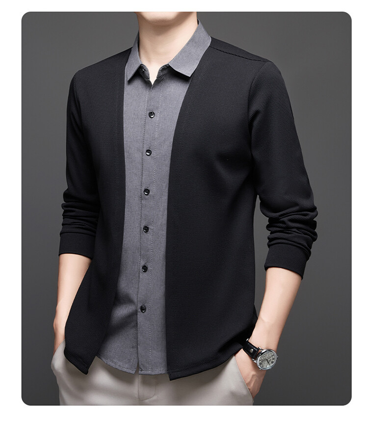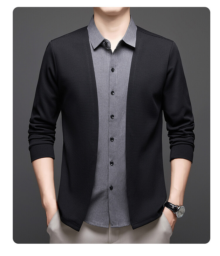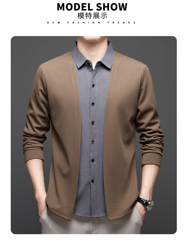 Новый стиль одностороннего мужчины поддельные две рубашки свитер кардиган повседневный бизнес вязаный свитер свитер куртка мужской оптом