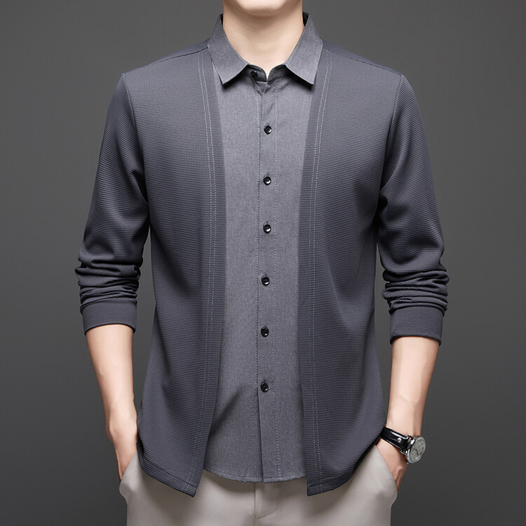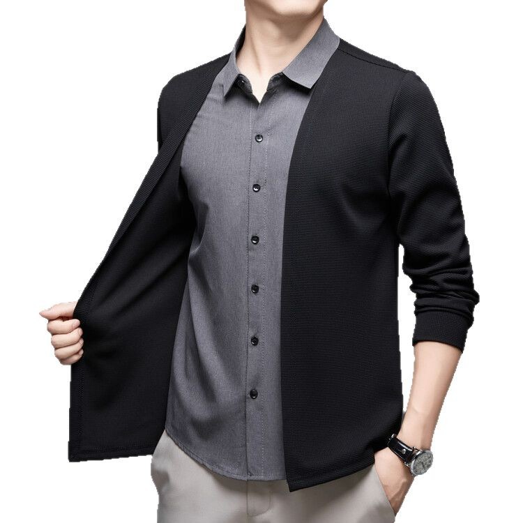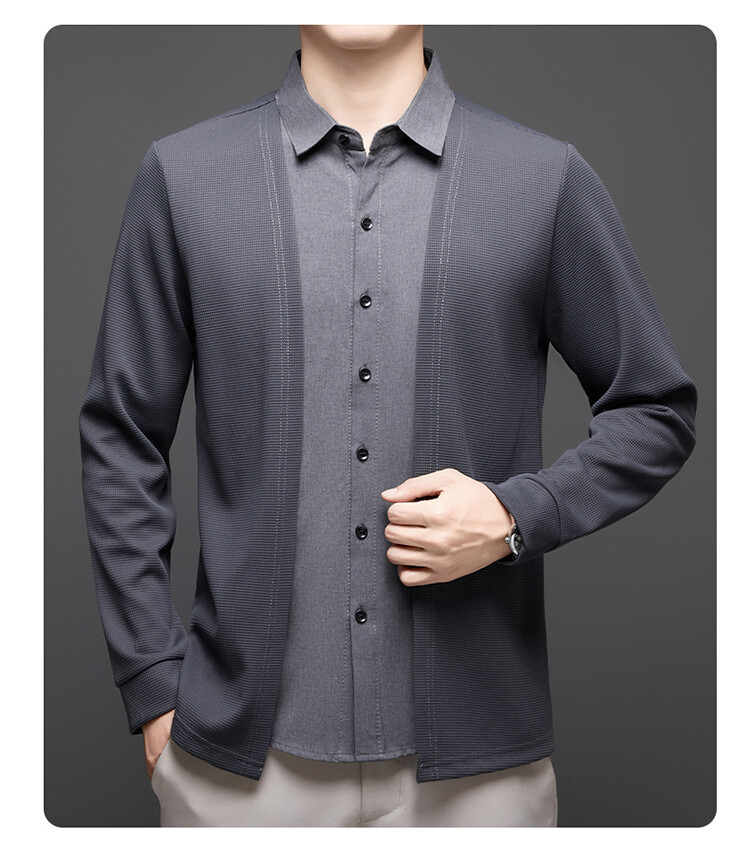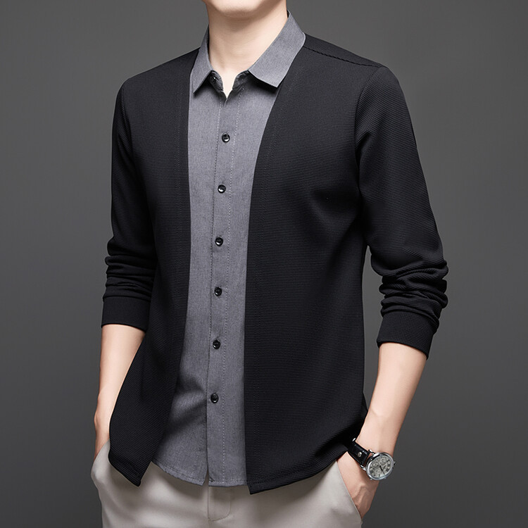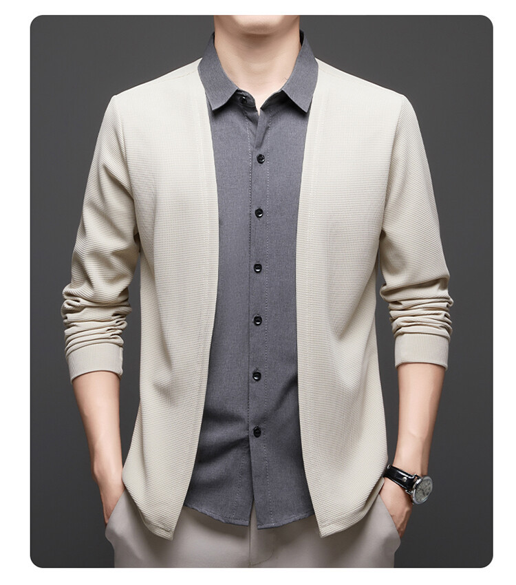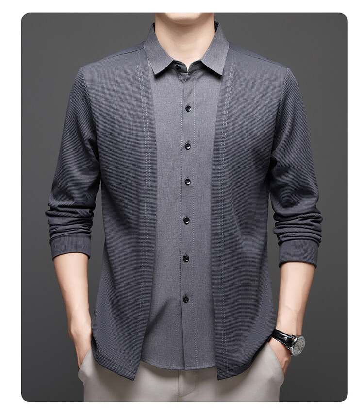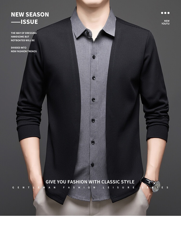 Новый стиль одностороннего мужчины поддельные две рубашки свитер кардиган повседневный бизнес вязаный свитер свитер куртка мужской оптом