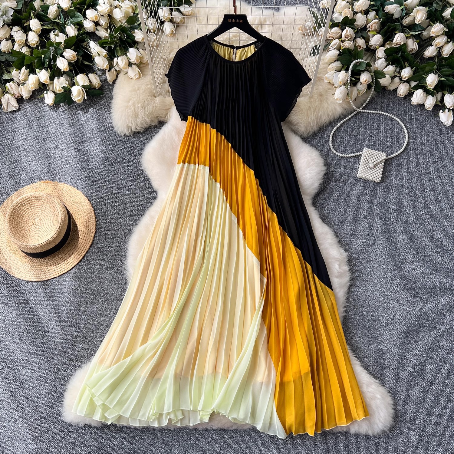 Европейское и американское ретро придворное платье с круглым вырезом и короткими рукавами