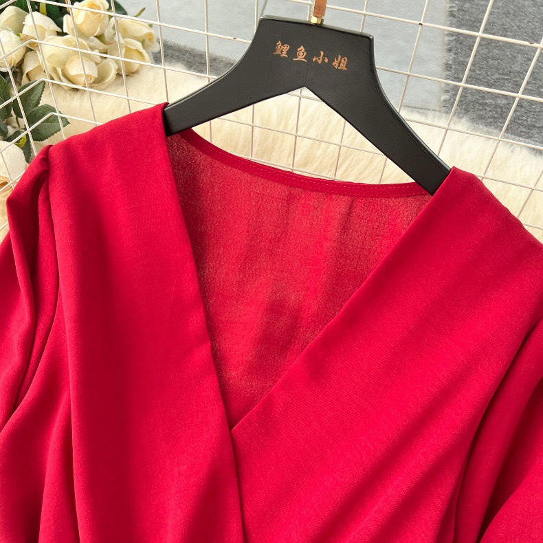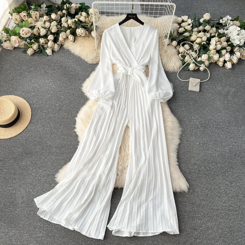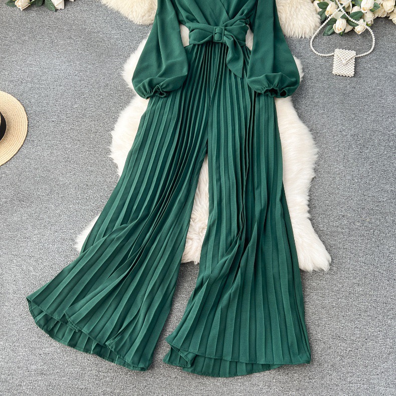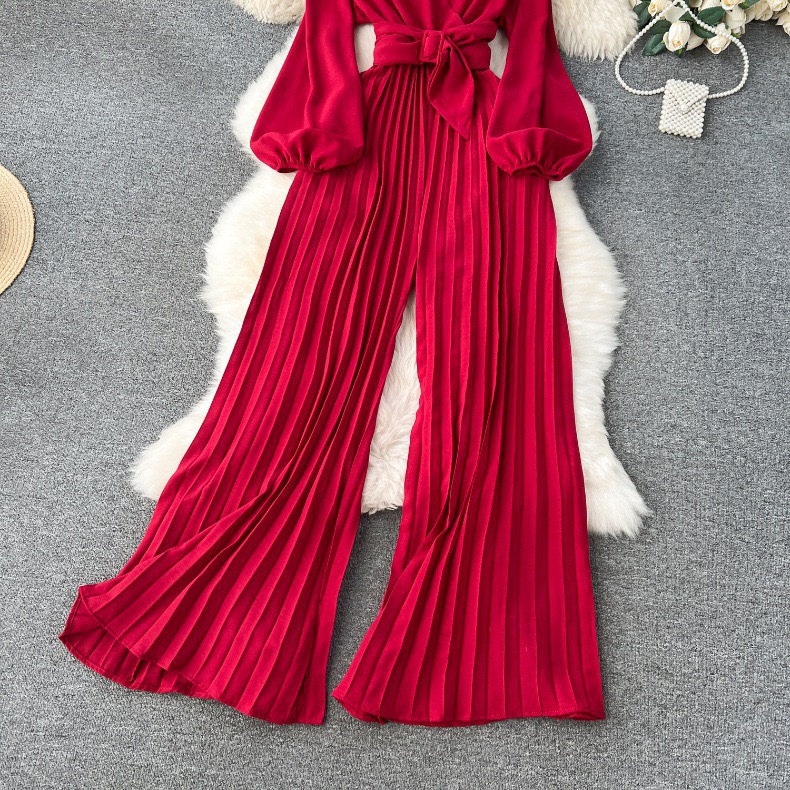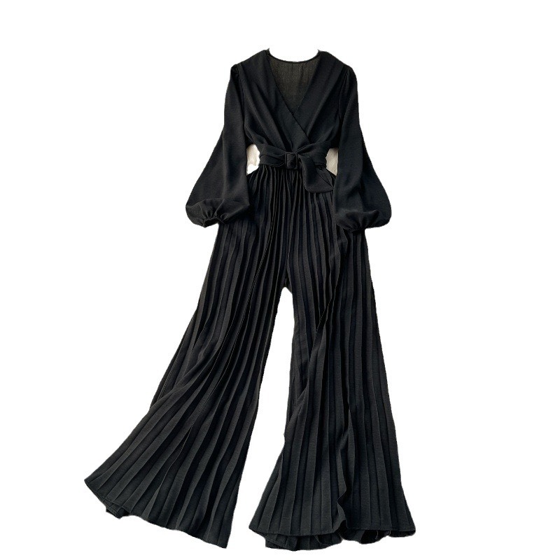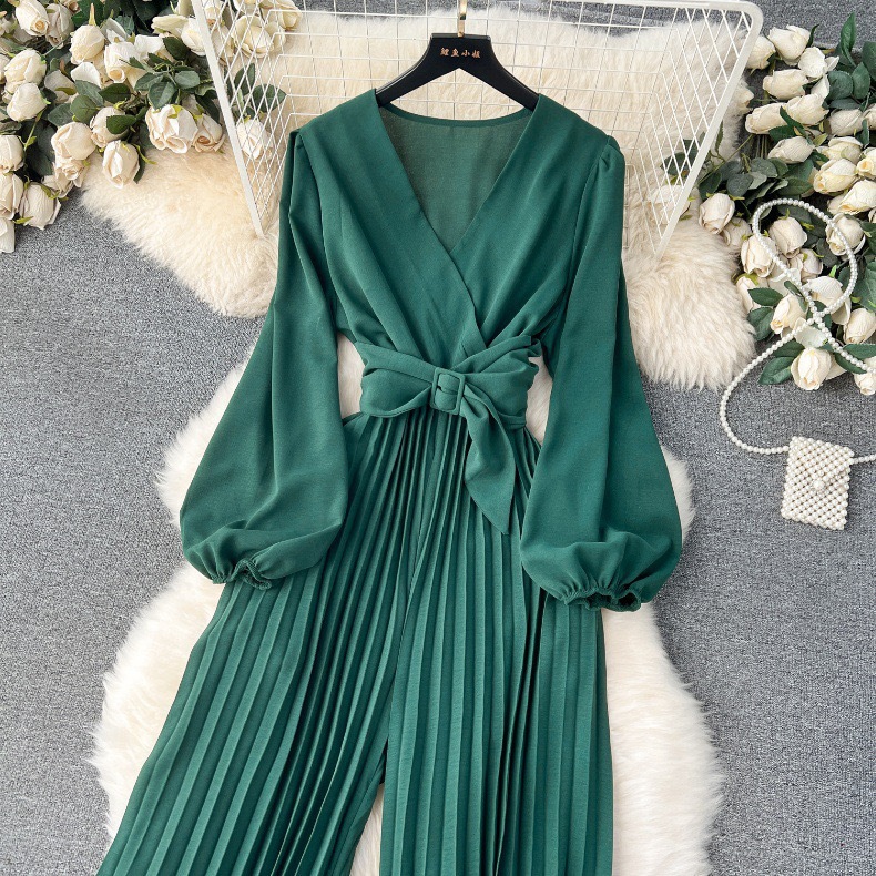 Трансграничные европейские и американские рукава с пузырьками jumpsuit весной новый темпераментный V-образный шнуровка