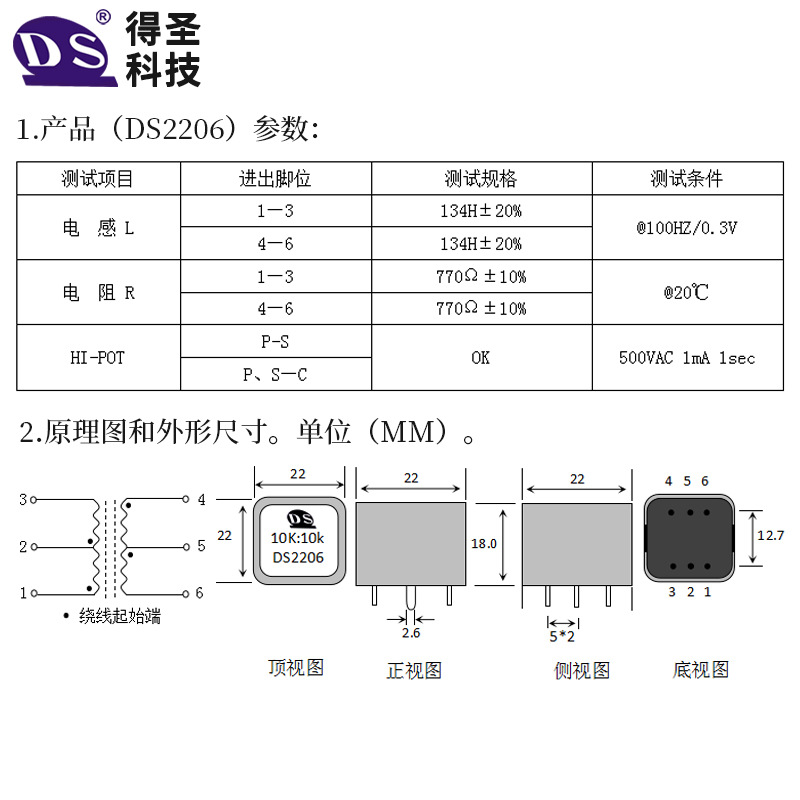 DS2206 аудио изолирующий трансформатор уклон 10K:10K сбалансированный выходной трансформатор