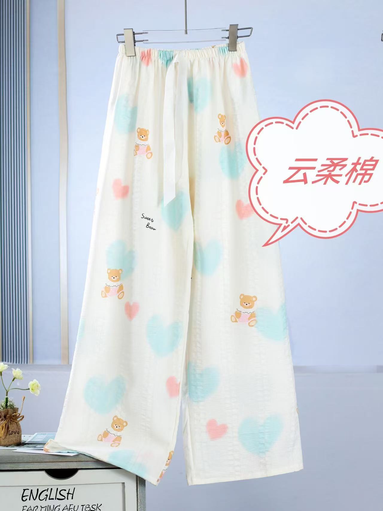 Облачно хлопчатобумажные женские брюки широкие брюки брюки от комаров брюки согнутые брюки повседневные домашние брюки свободные пижамы