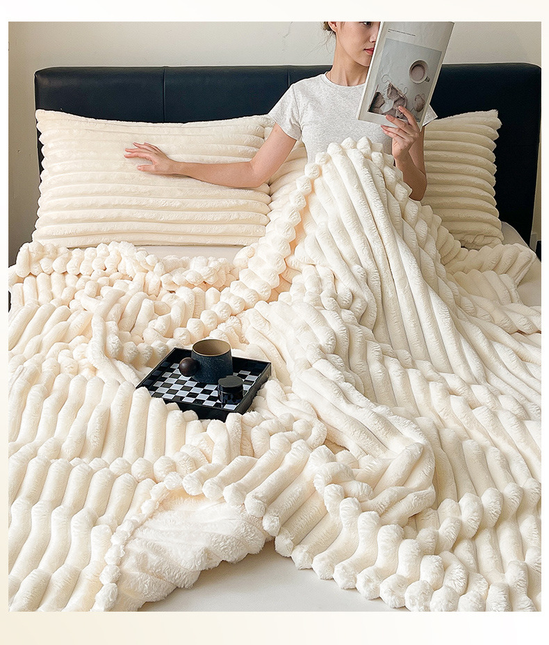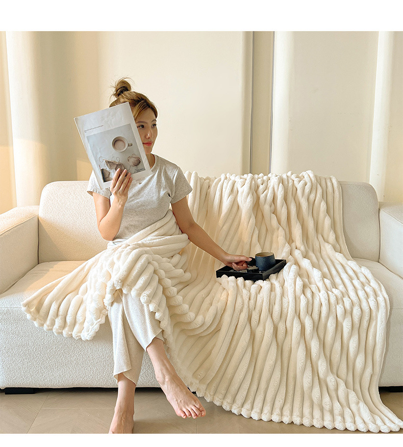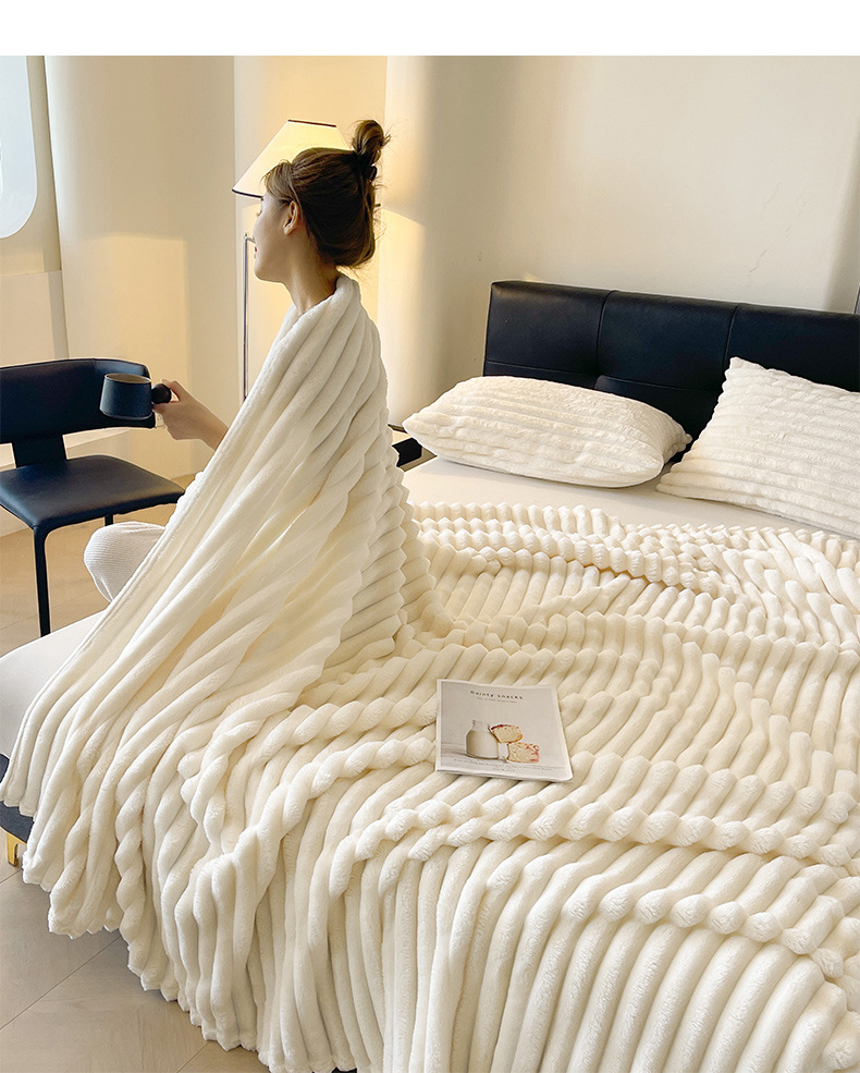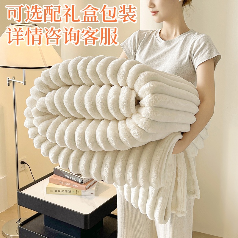 Фланелевое одеяло, утолщенное, теплое, подарочное одеяло, с имитацией меха кролика, полосатое, для дивана, для кондиционирования воздуха, для сна, оптовая продажа через границу