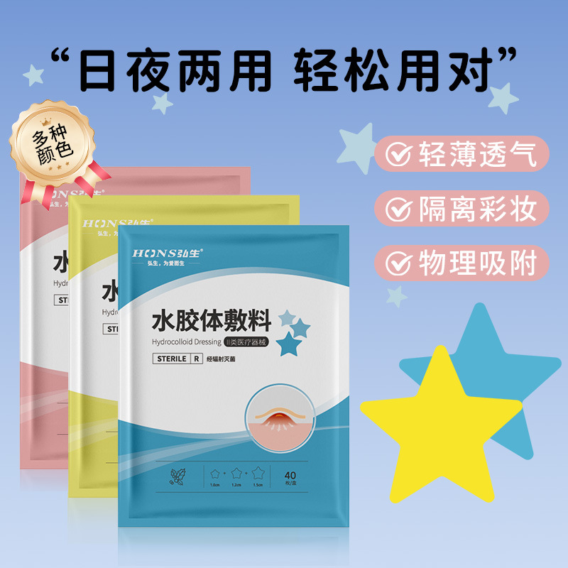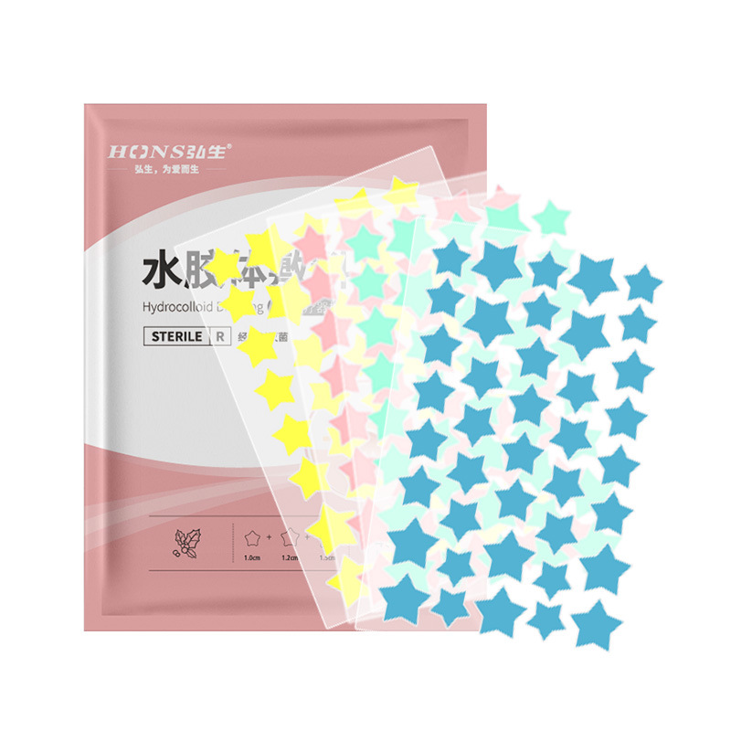 Стерильные пластыри от прыщей Hongsheng, гидроколлоидная повязка, цветные пластыри от прыщей в форме звезды, невидимые и дышащие, в индивидуальной упаковке