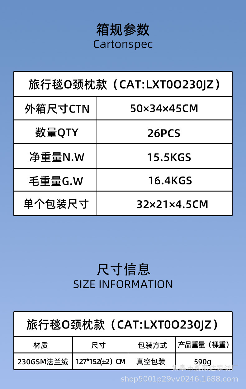 法兰绒旅行毯O230颈枕