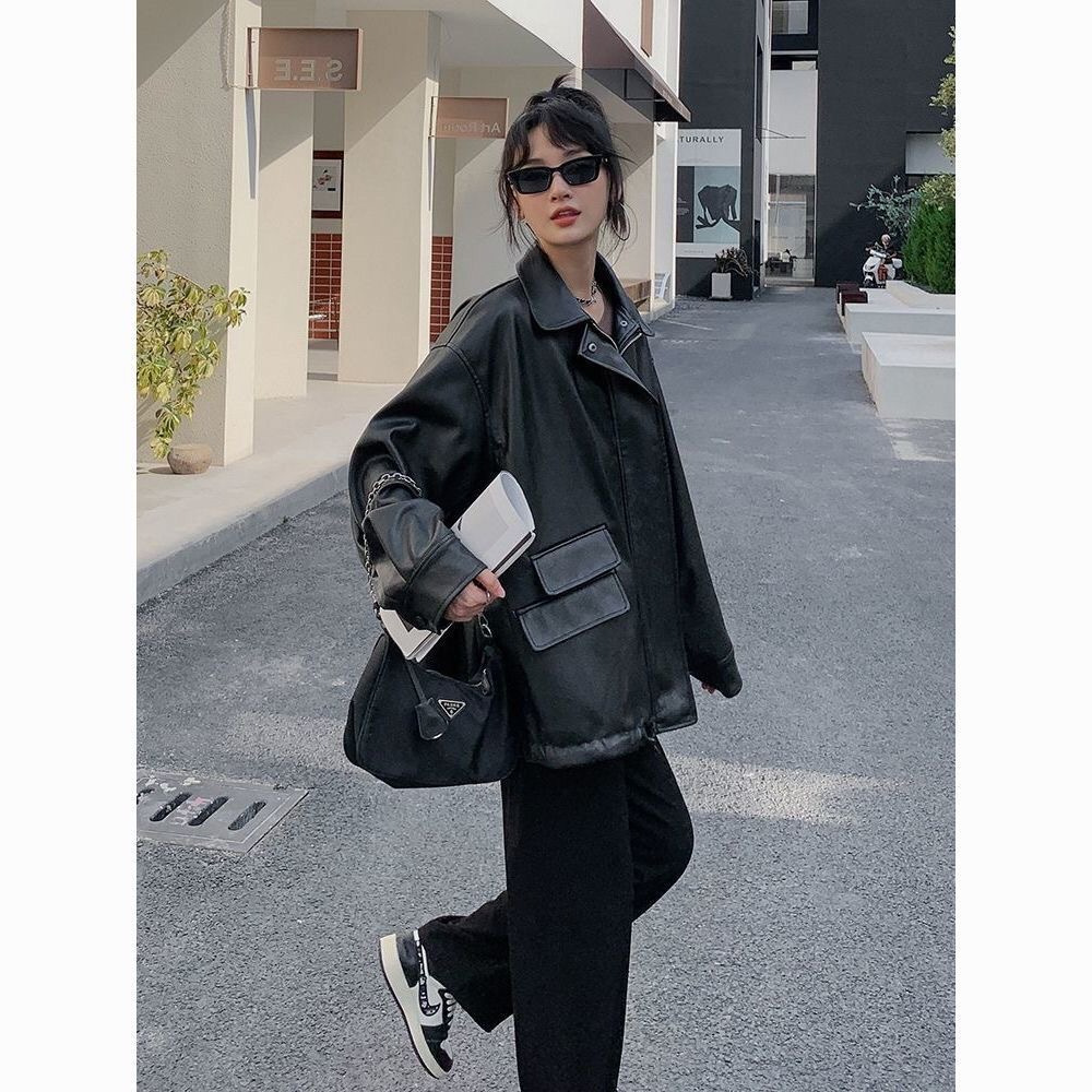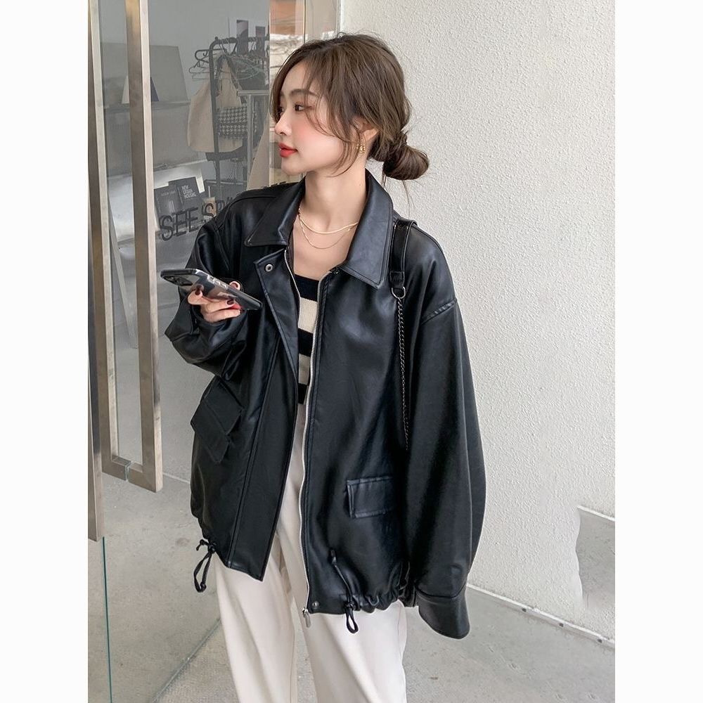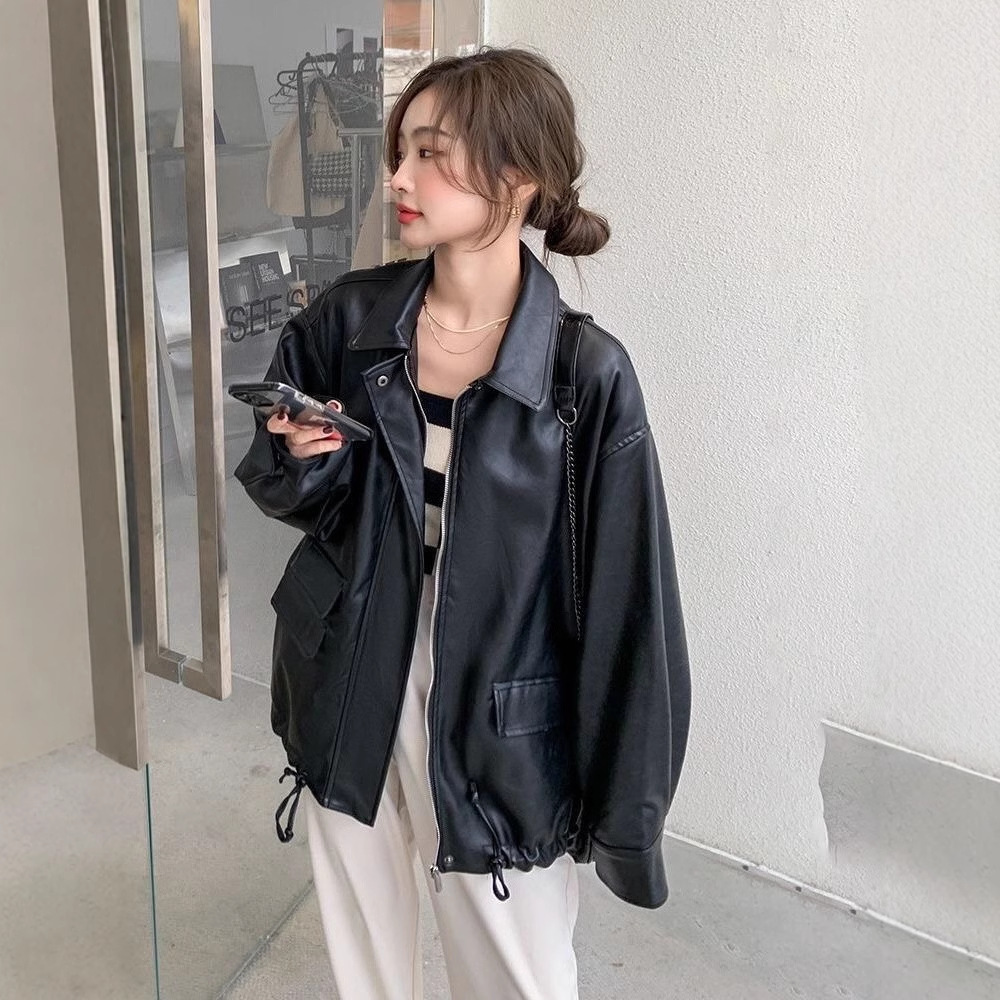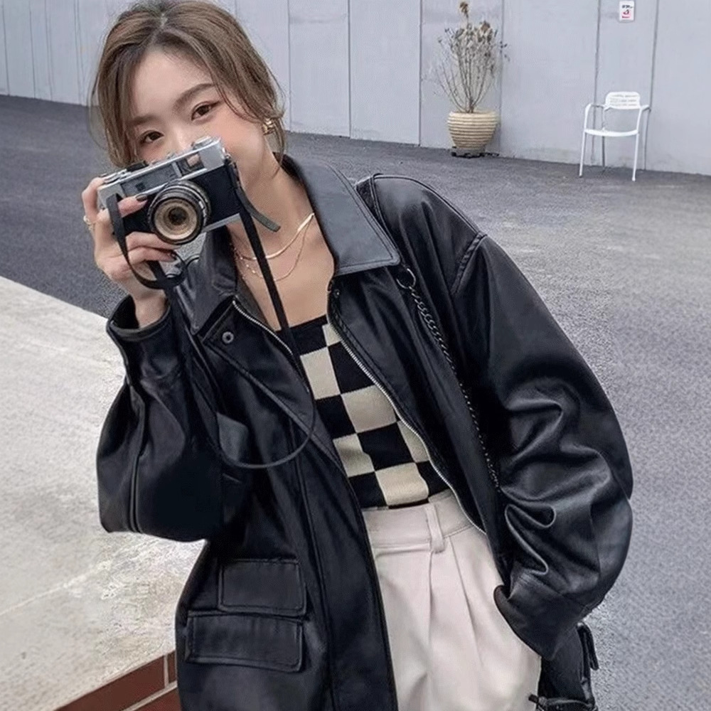 Кожаная куртка женская короткая весна 2025 новый гонконгский ветер черный pu маленький американский ретро автомобильный костюм куртка