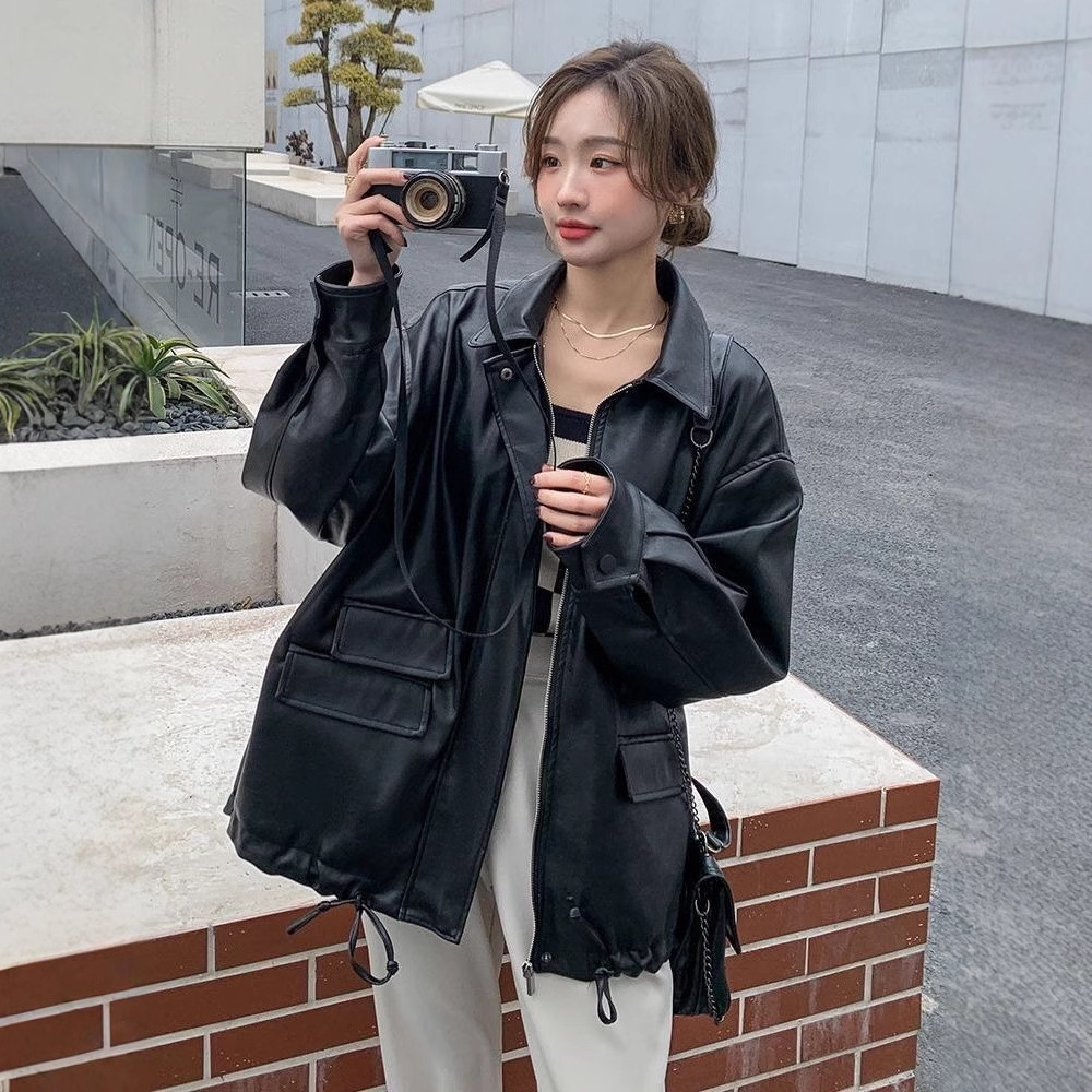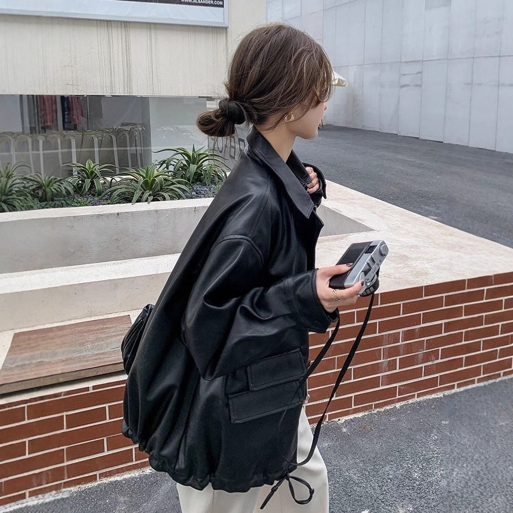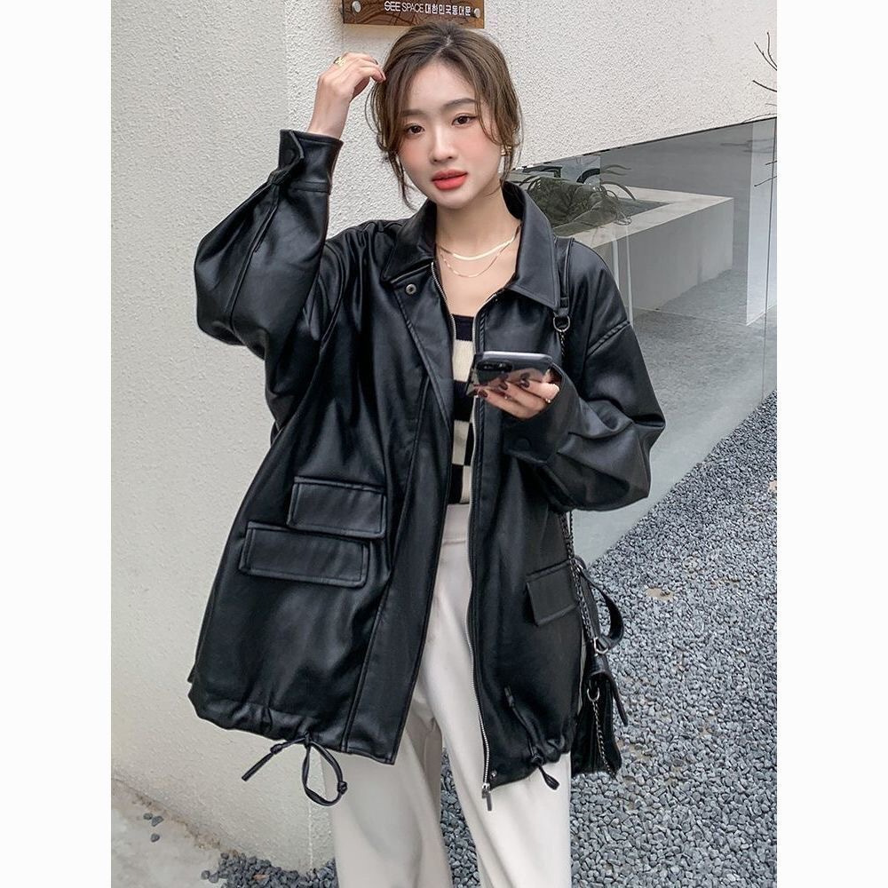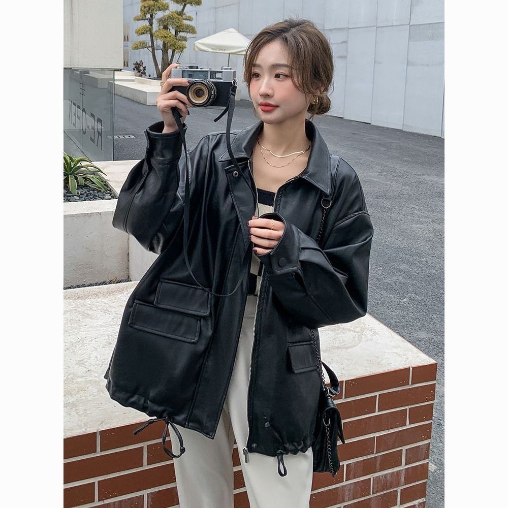 Кожаная куртка женская короткая весна 2025 новый гонконгский ветер черный pu маленький американский ретро автомобильный костюм куртка