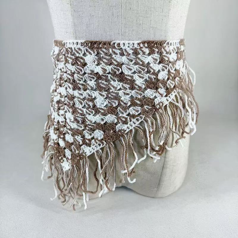 Весна и лето новый допаминовый треугольник ремешок горячая девушка мода с шарфом на талии пердеть шторы тюрбан ручной крюк ткач