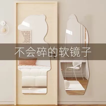 Зеркало в полный рост, необычной формы (медведь), взрывобезопасное зеркало для примерки, настенное безрамное самоклеящееся зеркало для дома, декоративное зеркало, без сверления.