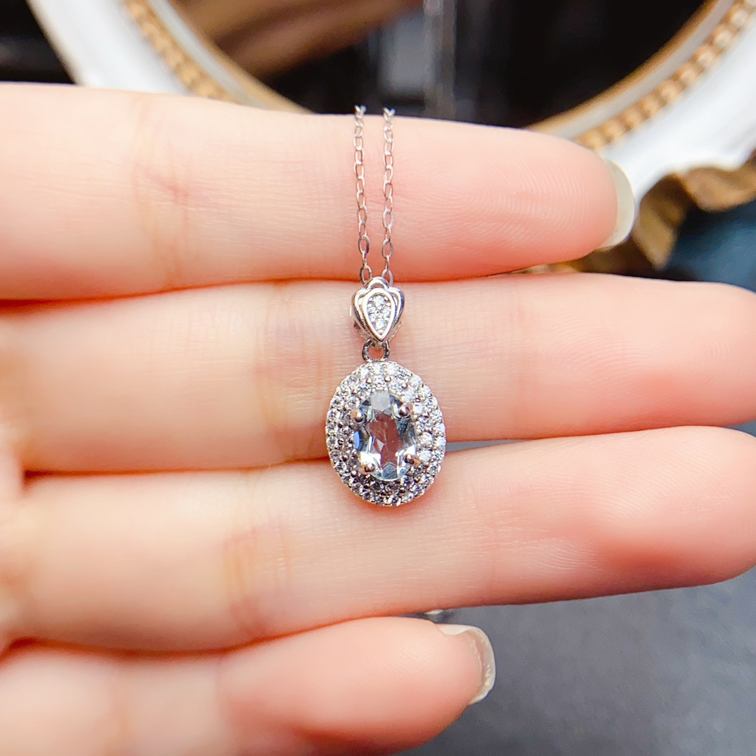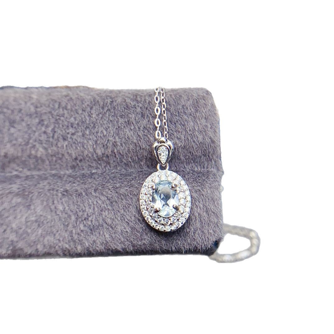 Кулон с натуральным аквамарином S925, серебро, инкрустация основным камнем 5*7
