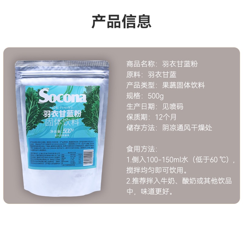 SOCONA Чистый порошок из капусты 500 г фруктовый и овощной порошок Диетическое волокно Пить зеленый сок Питание Фитнес-заменитель завтрака