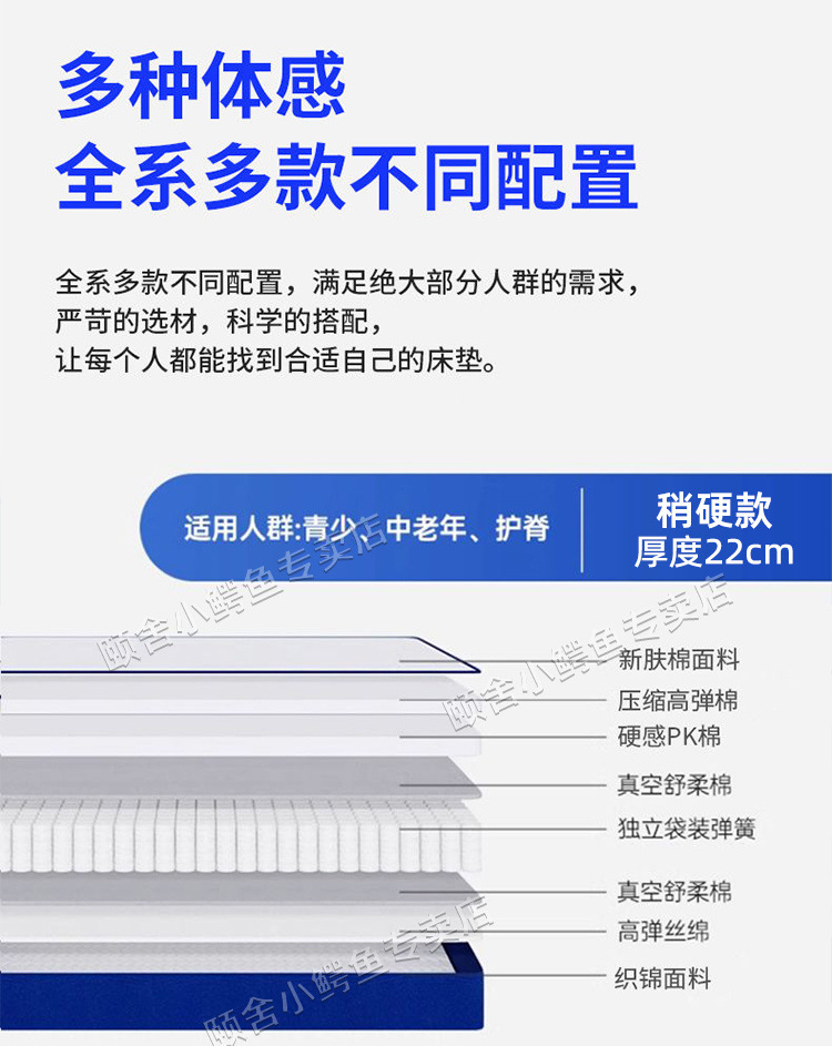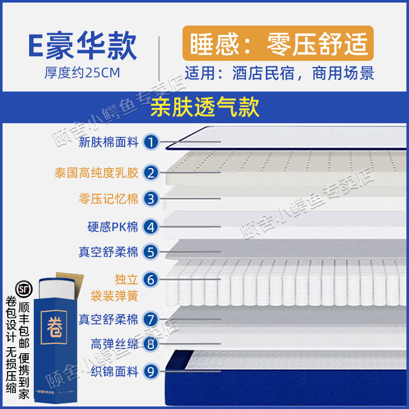 Модель PLB, толщина 22cm + рулонная упаковка, синяя коробка [модель с немного более жесткой защитой позвоночника]; Модель PLD толщиной 24cm + рулонная упаковка, синяя коробка [комфортная модель с нулевым давлением]; Модель ПЛК толщиной 23cm + рулонная упаковка, синяя коробка [модель для комфортного сна]; Модель PLE толщиной 25cm + рулонная упаковка, синяя коробка [модель роскошного отеля]