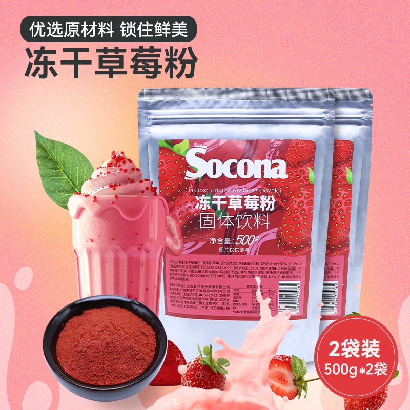 SOCONA лиофилизированный порошок клубники 500 г * 2 мешка фруктового и овощного порошка для кофе чай с молоком выпечка торт снежинка хрустящее сырье