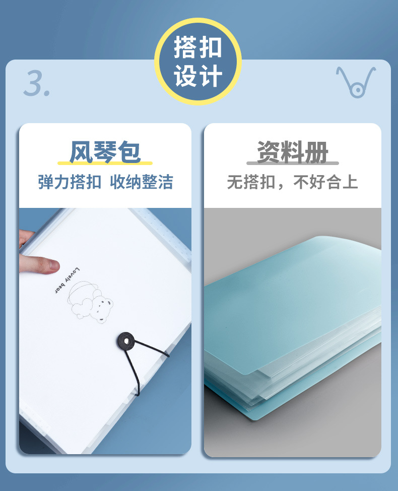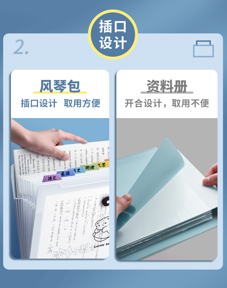 Многослойная прозрачная сумка-аккордеон с вставкой для учащихся начальной школы.