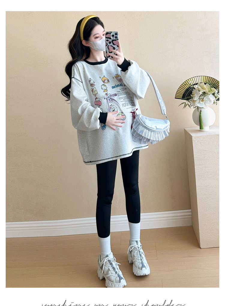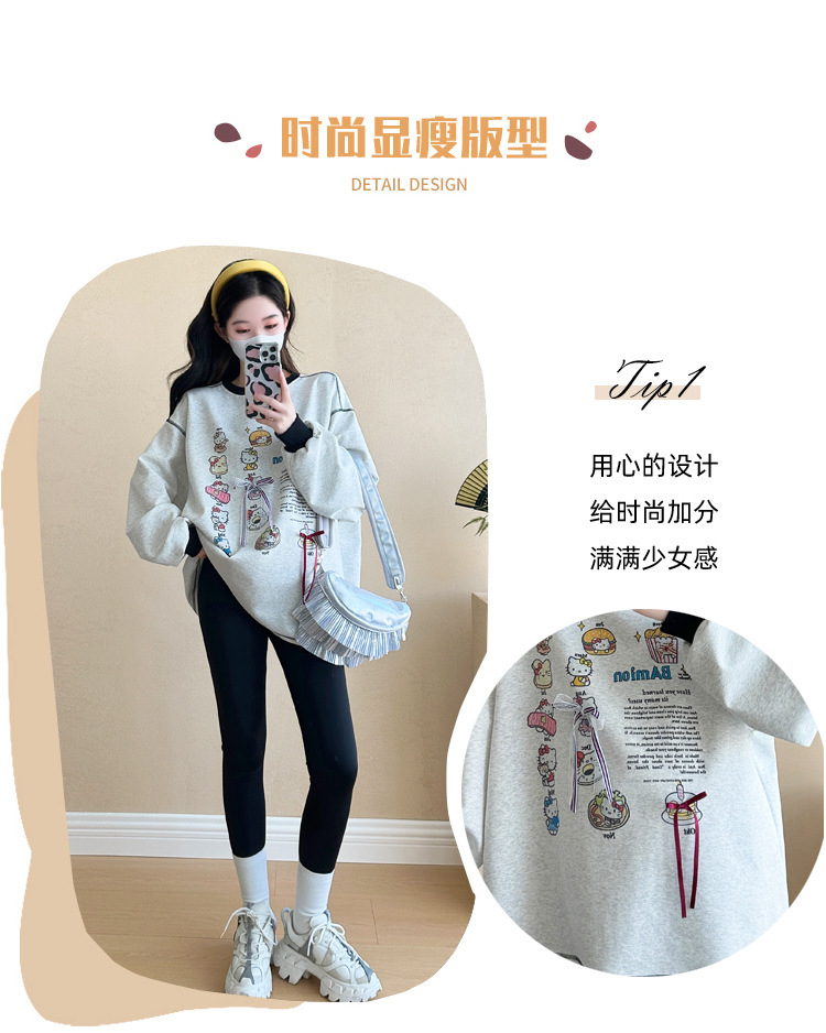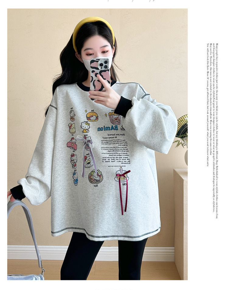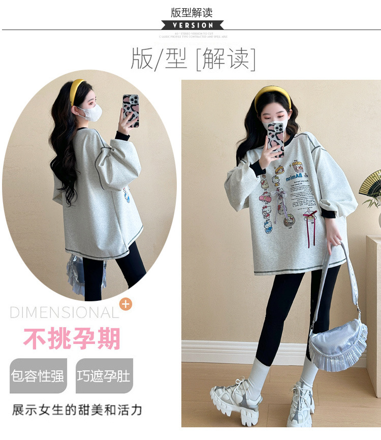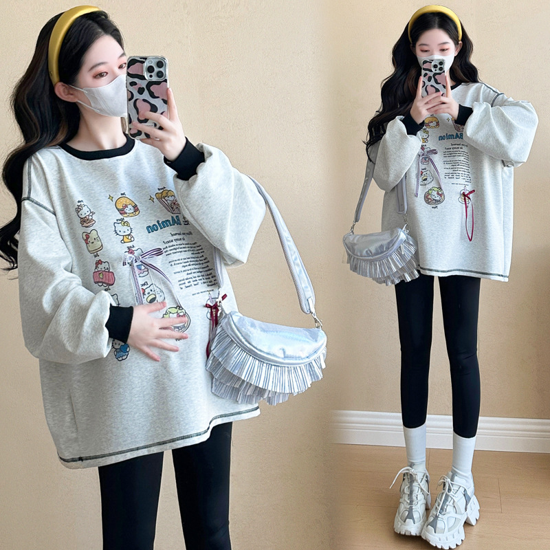 Весеннее платье корейская беременная мода минус возраст ленивый хлопчатобумажный свиток большого размера дикий принт граффити беременные женщины модный топ