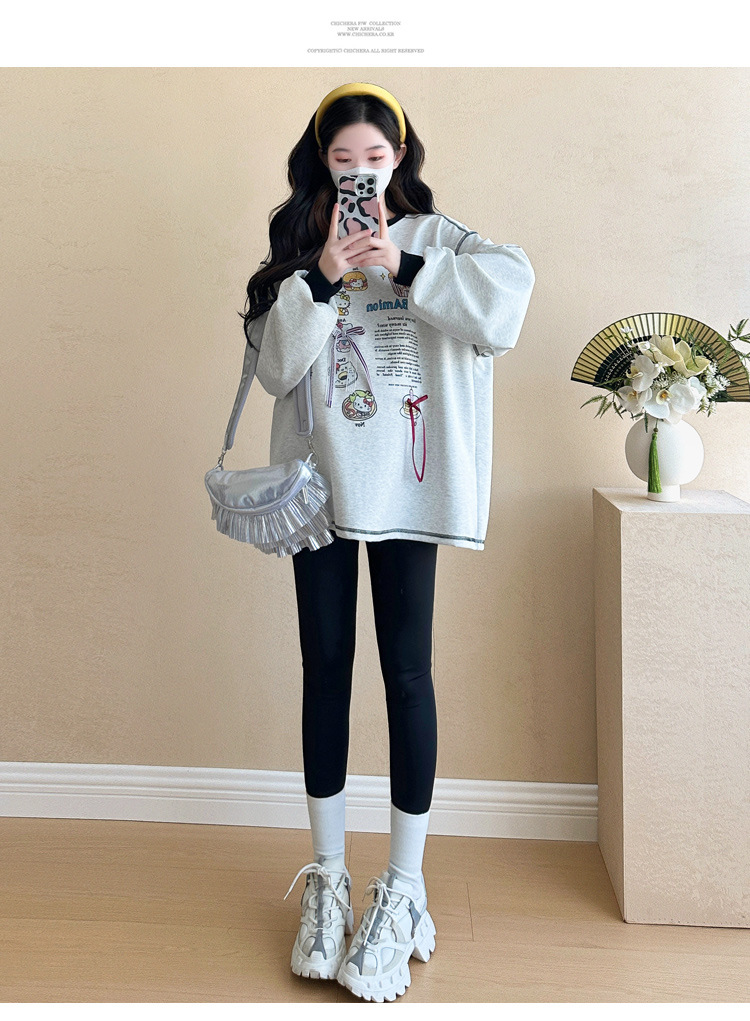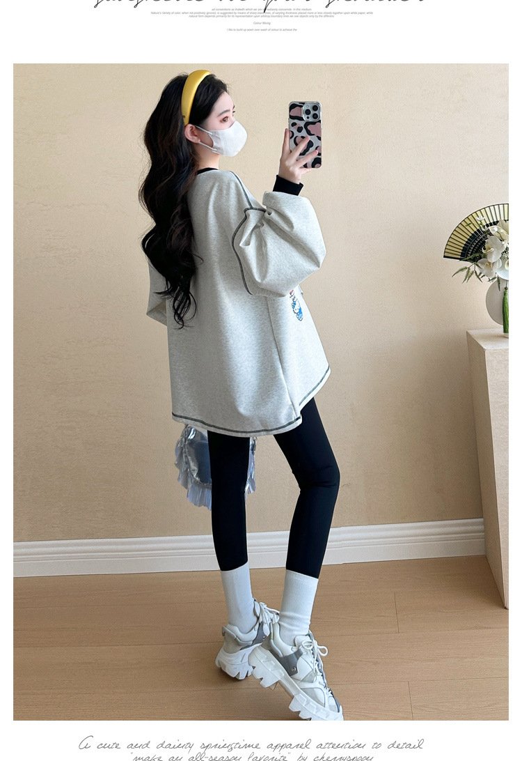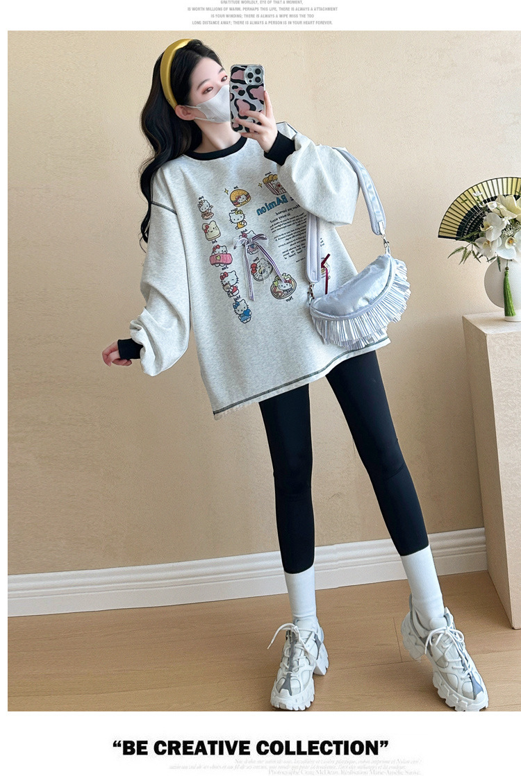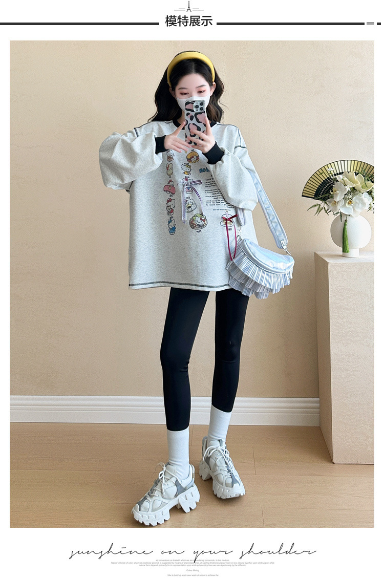 Весеннее платье корейская беременная мода минус возраст ленивый хлопчатобумажный свиток большого размера дикий принт граффити беременные женщины модный топ