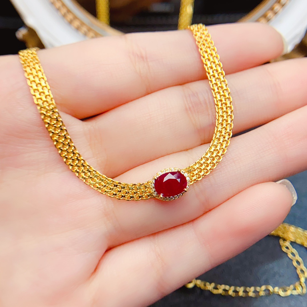 Оптовая продажа фабрики взрывной натуральный рубин подвеска S925 серебро инкрустированный основной камень 5*7 горячие продажи в Европе и Америке