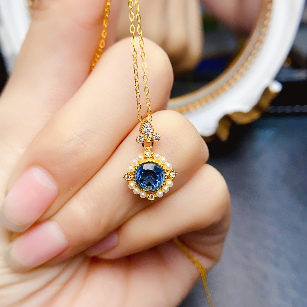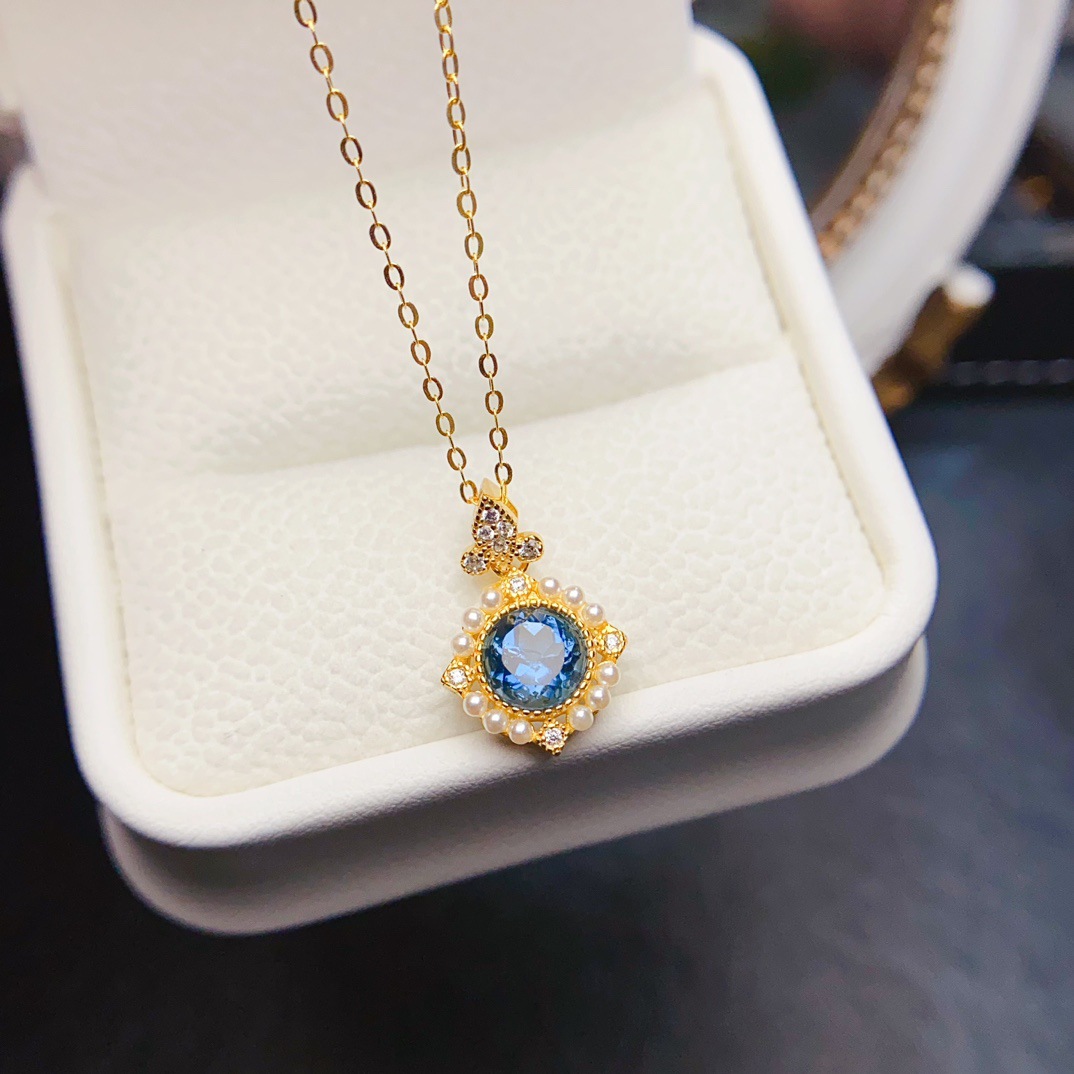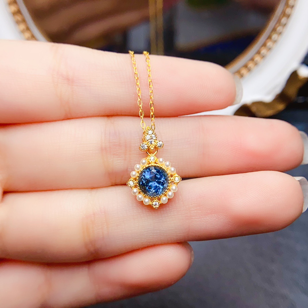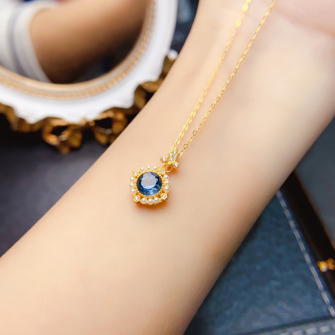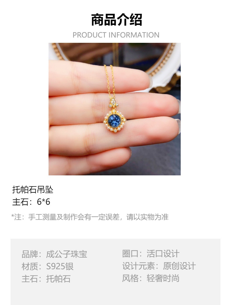 Новый натуральный топазовый кулон S925 Серебряный инкрустированный основной камень 6*6 мм