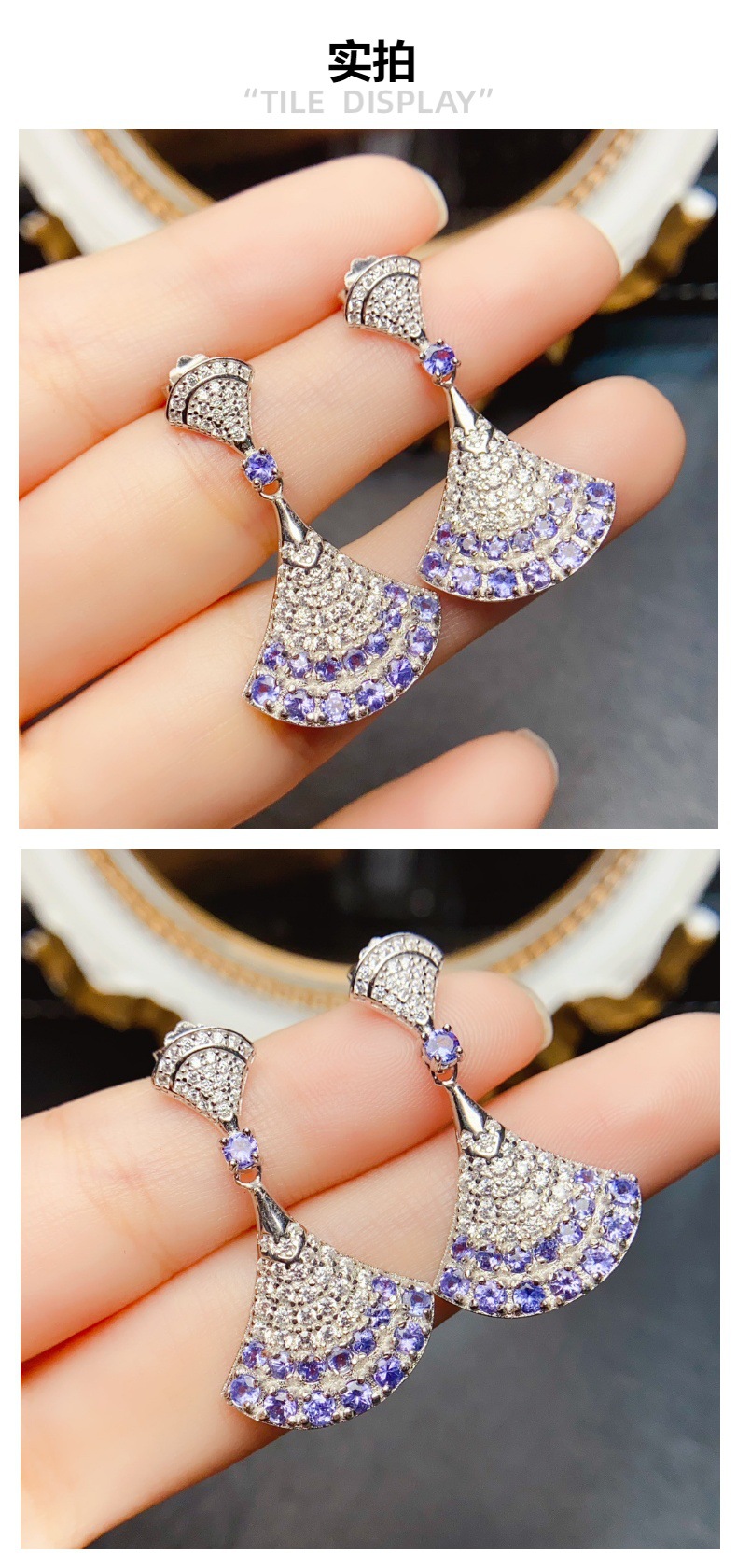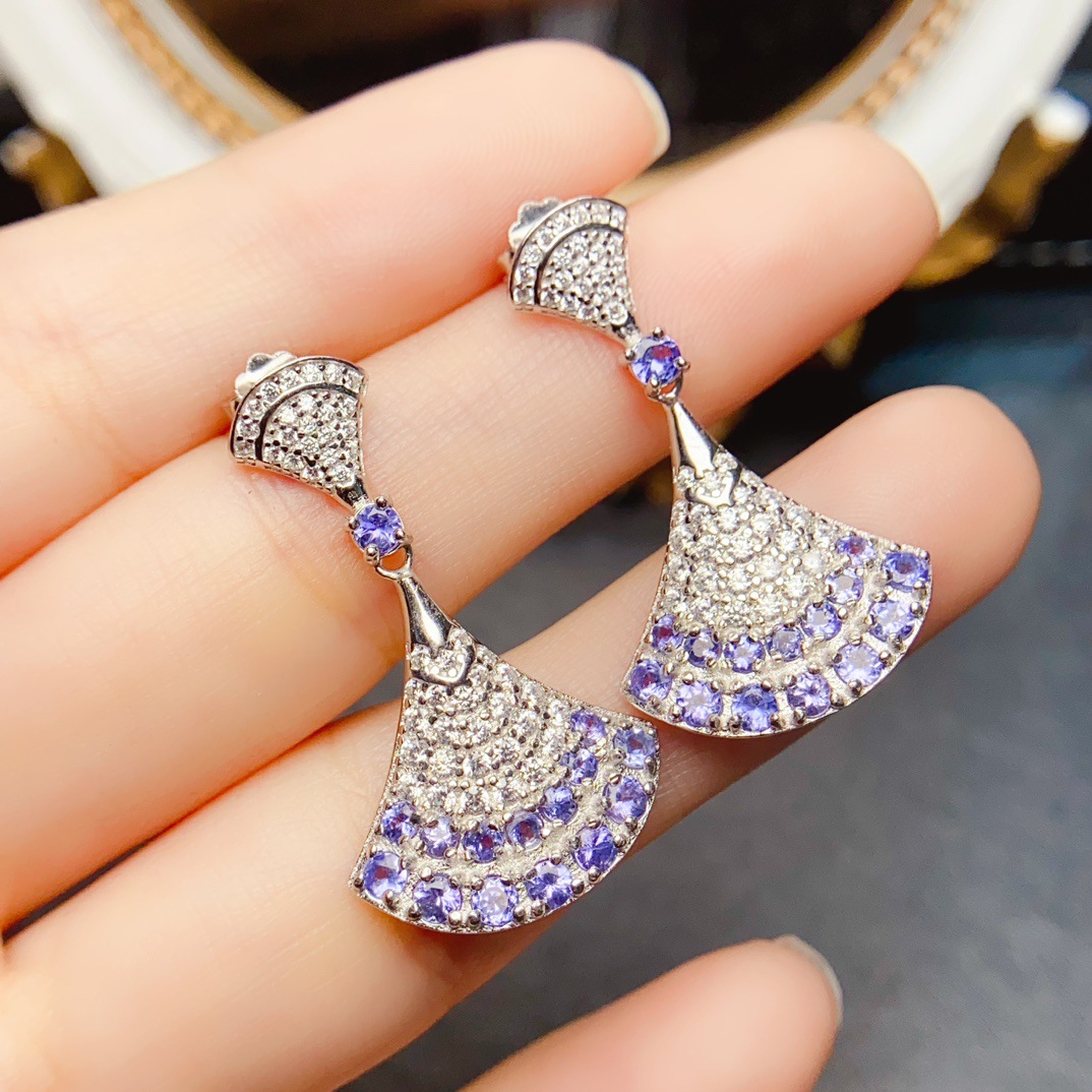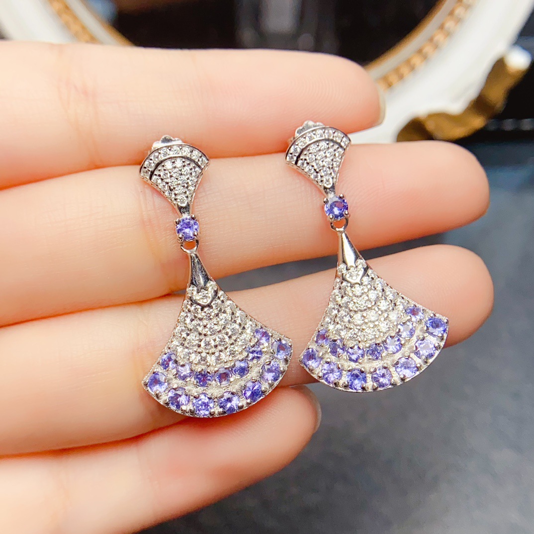 Новый натуральный танзанитовый серьги S925 Серебряный инкрустированный основной камень 2*2 мм дикий интернет-красный взрывной женский декор оптом