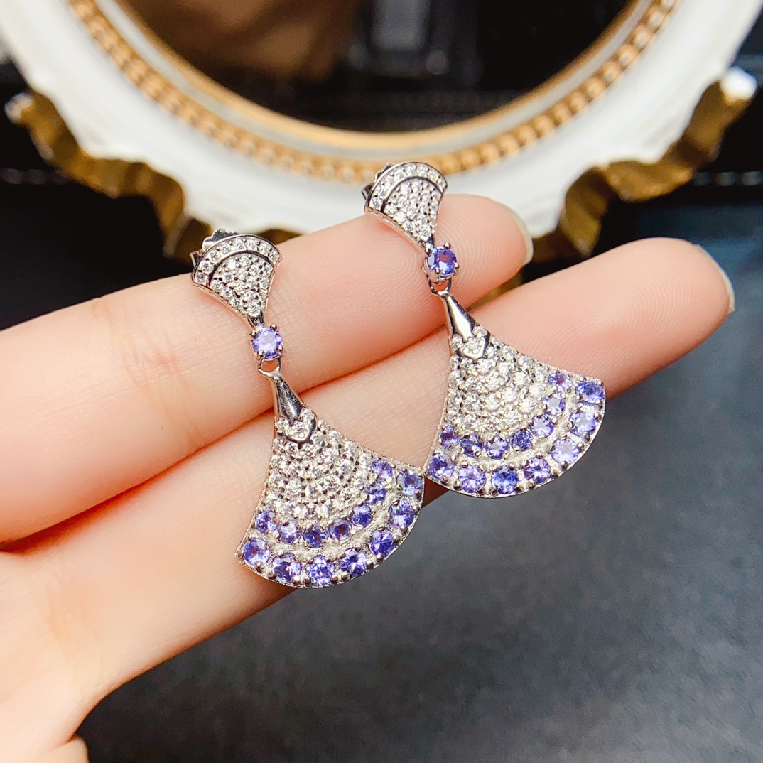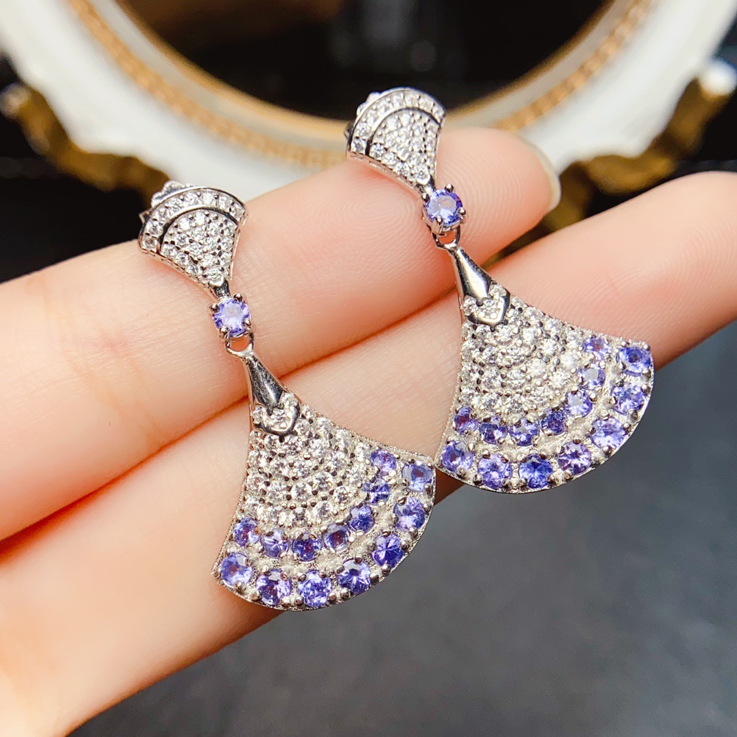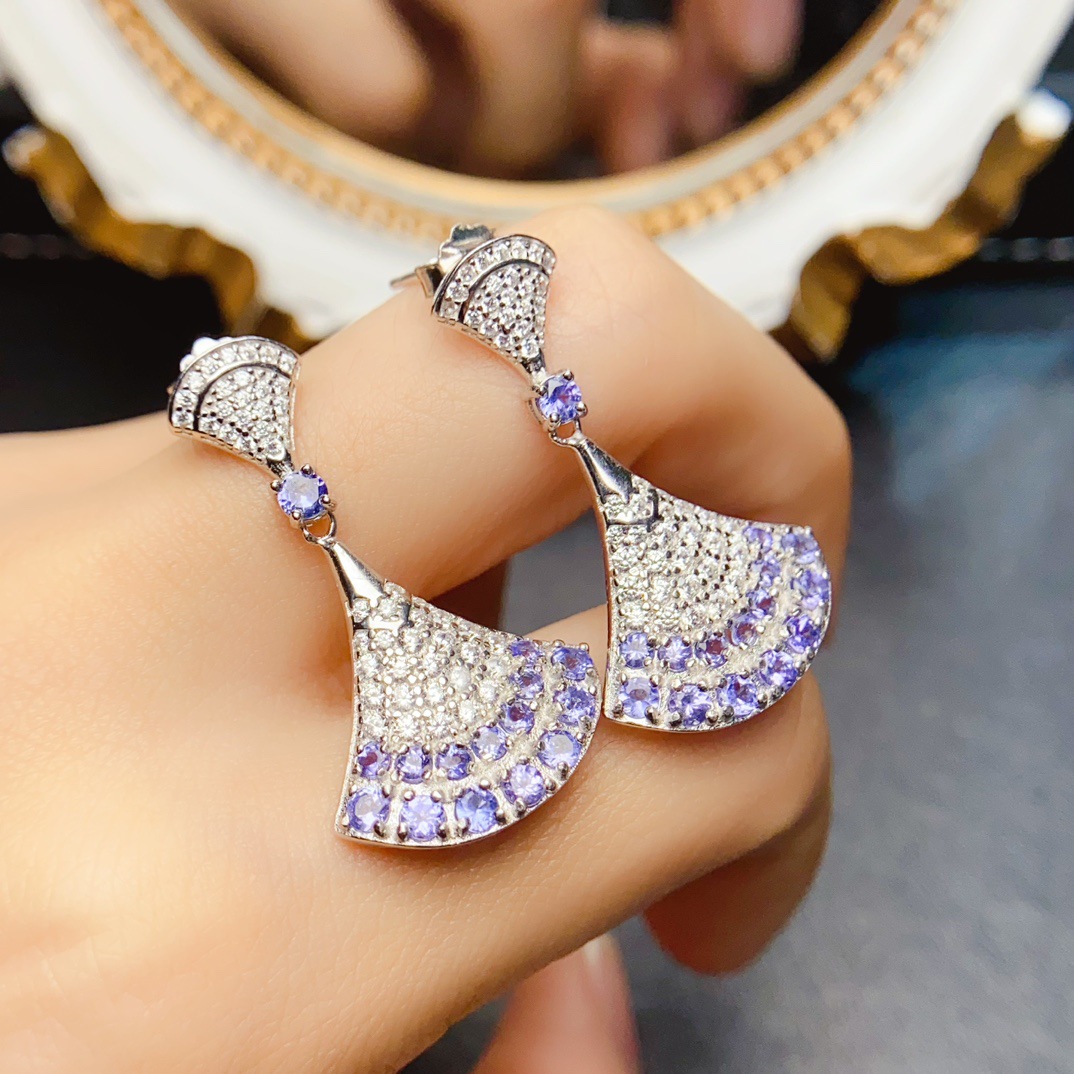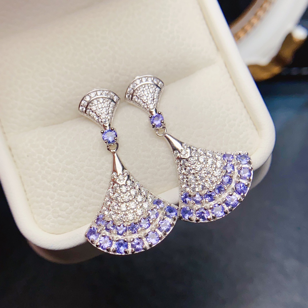 Новый натуральный танзанитовый серьги S925 Серебряный инкрустированный основной камень 2*2 мм дикий интернет-красный взрывной женский декор оптом