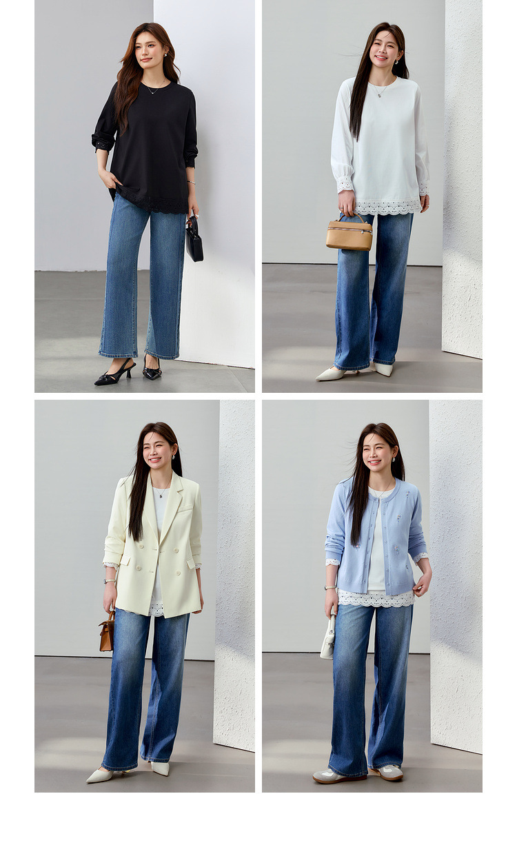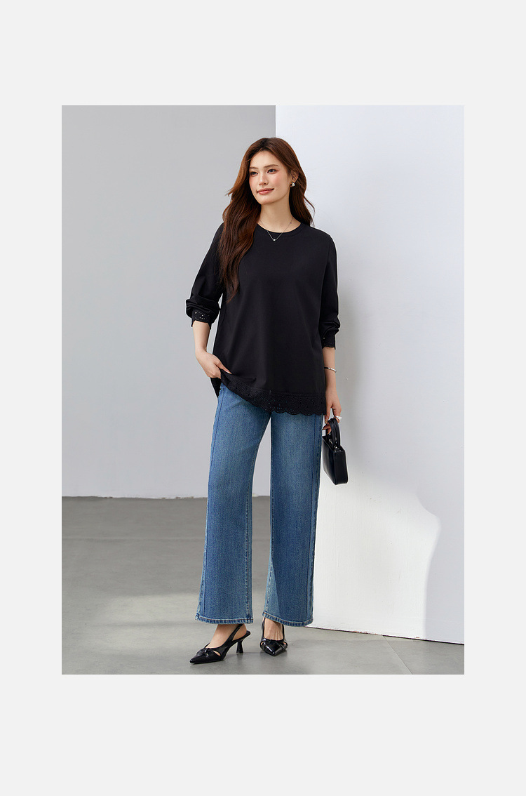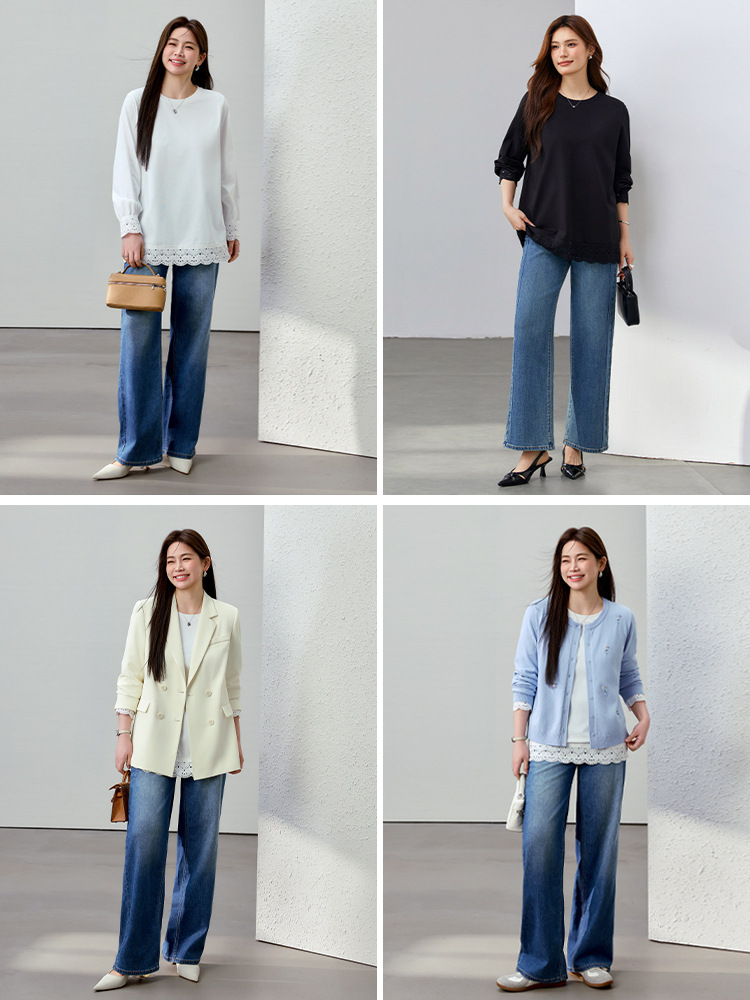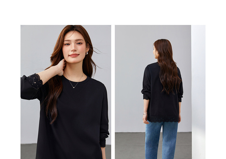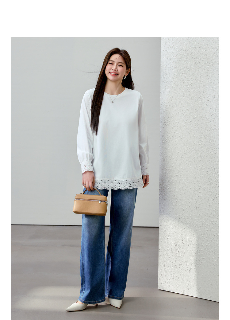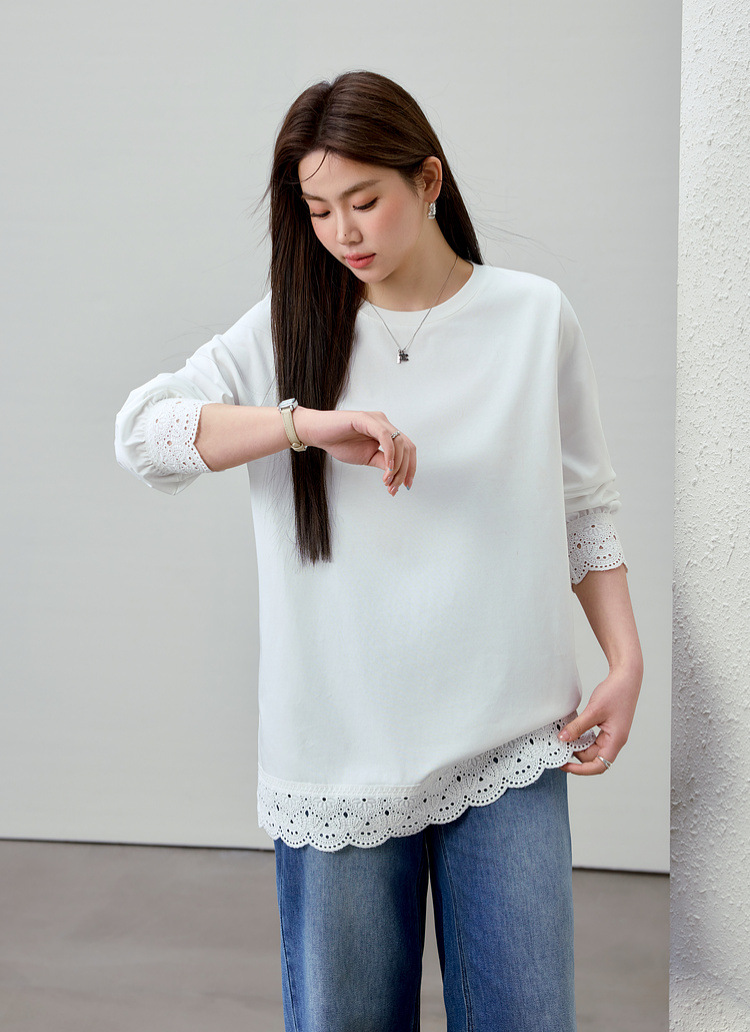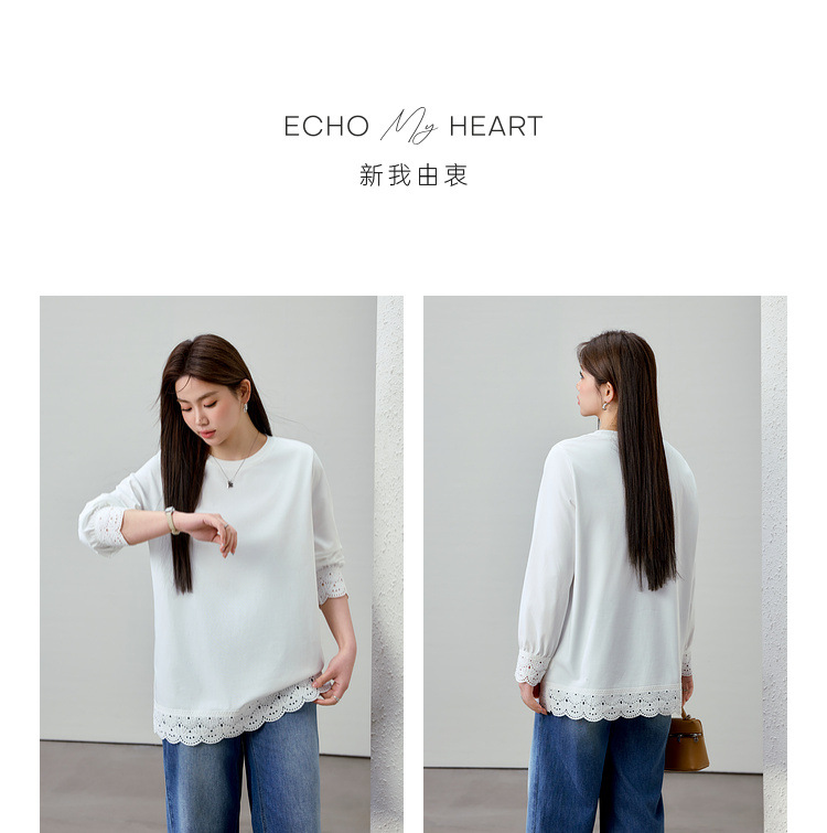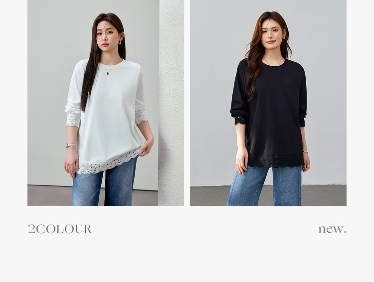 [Модный кружевной сшитый дизайн тонкая футболка] Funny Show большой размер женский толстый mm2025 весенний стиль новый