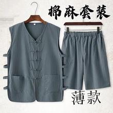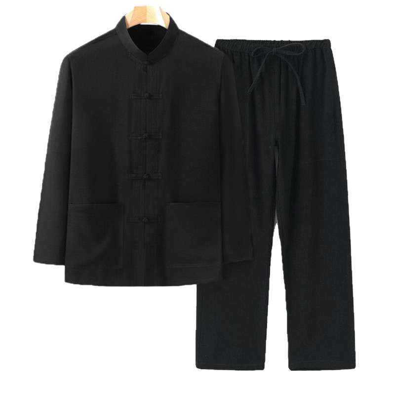 Мужской костюм-тан в китайском стиле из хлопка и льна, весна/лето 2025, длинный рукав, этнический ретро, свободный крой, одежда для тай-чи.
