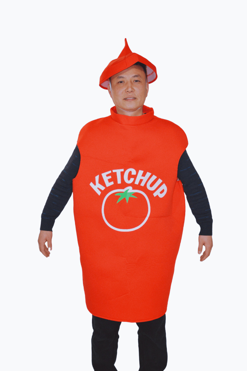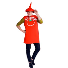 Хэллоуин смешные взрослые мужчины и женщины красный томатный соус комбинезон косплей костюм для вечеринки