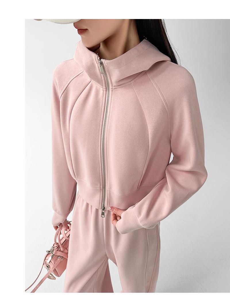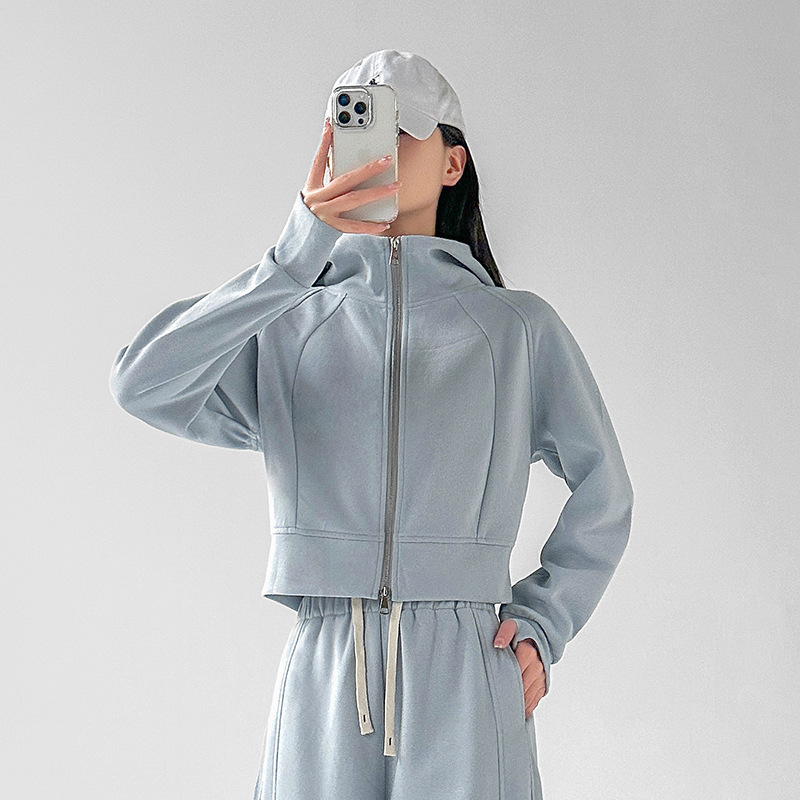 Возьмите зеркало с маленькой талией, короткая трехмерная стрижка, стройная спортивная куртка с капюшоном