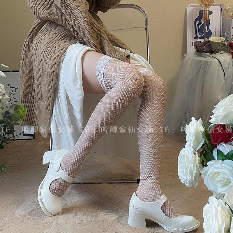 Жужжание на дому кружевные кружевные рыболовные сети носки на коленях сексуальные летние тонкие забавные носки на кровати белые чулки