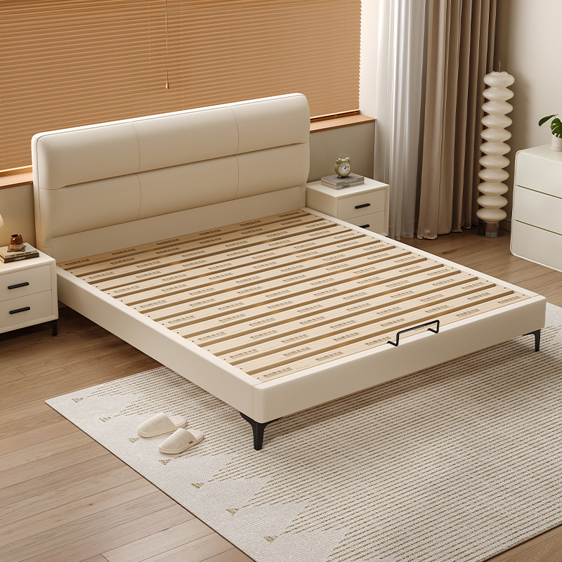 Простая легкая кожаная кровать в итальянском стиле Современная минималистская спальня Тонкая кровать 1,8 м Спальня Свадебная кровать
