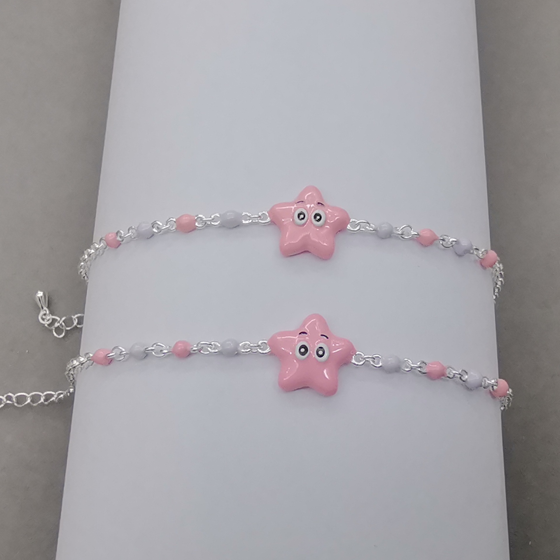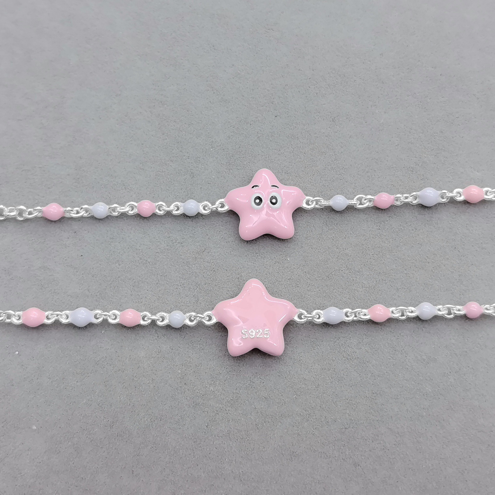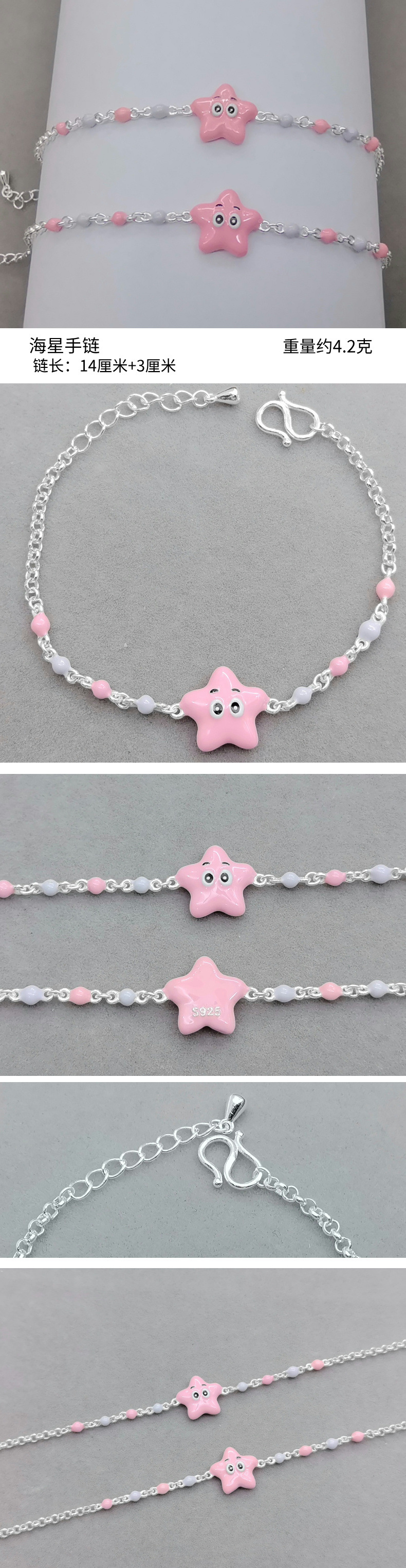 S925 браслет из стерлингового серебра новый капающий клей милый розовый морской звезды ребенок браслет серебро завод прямых продаж