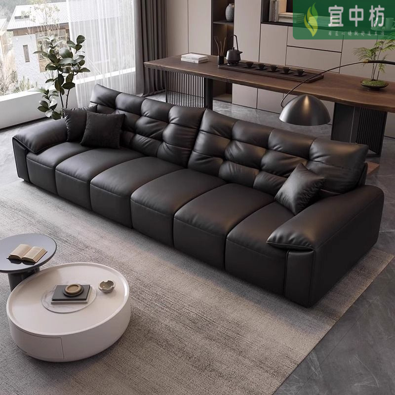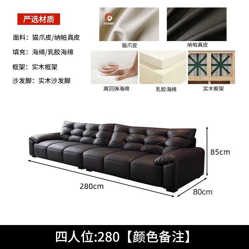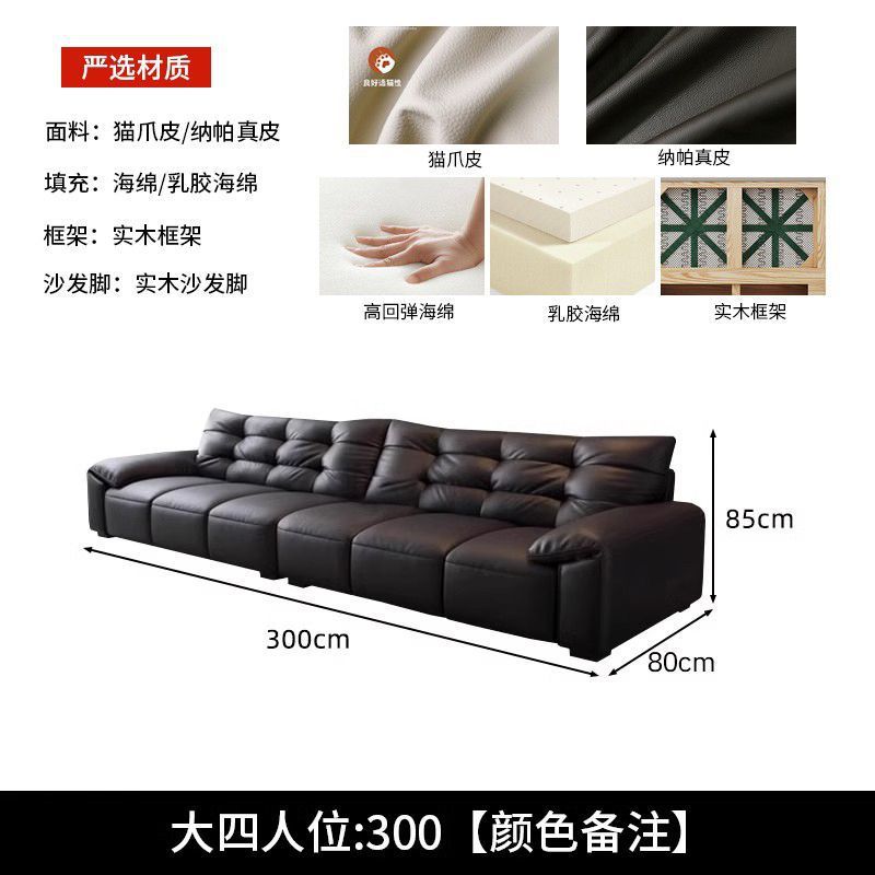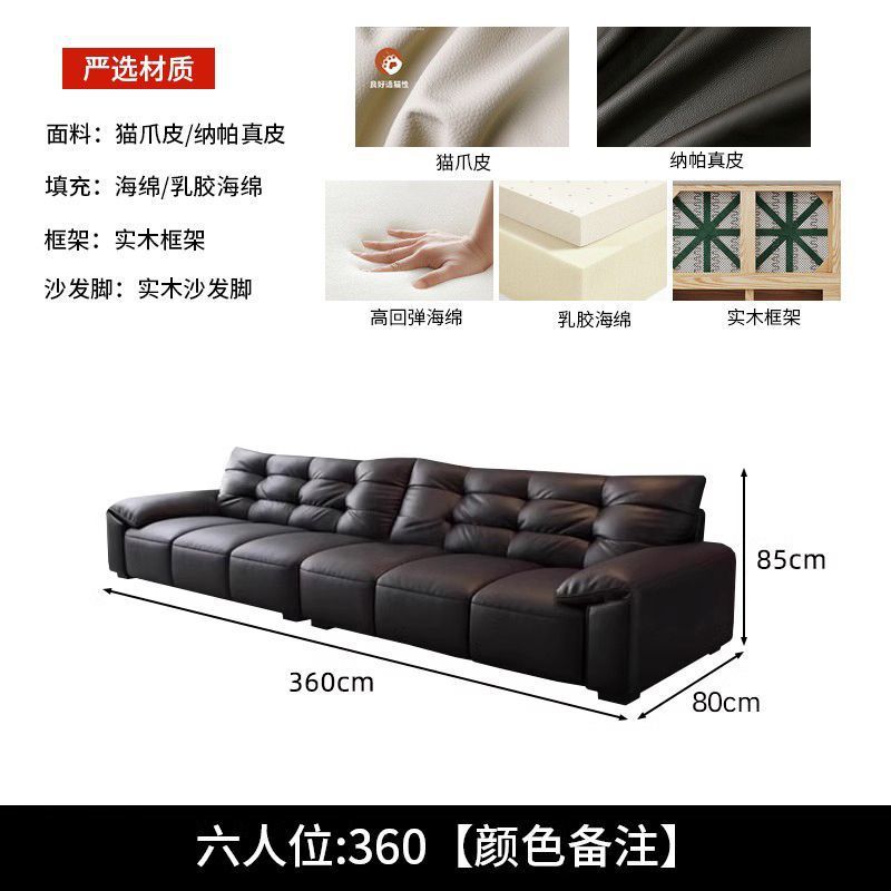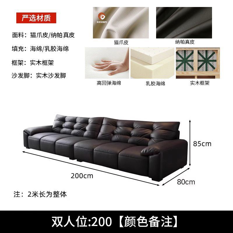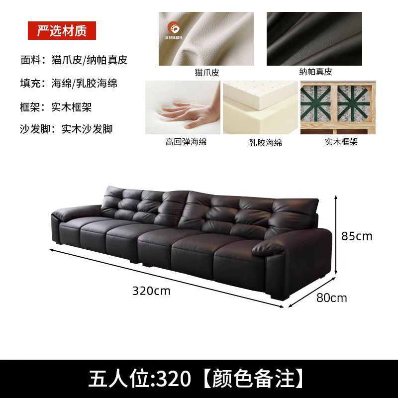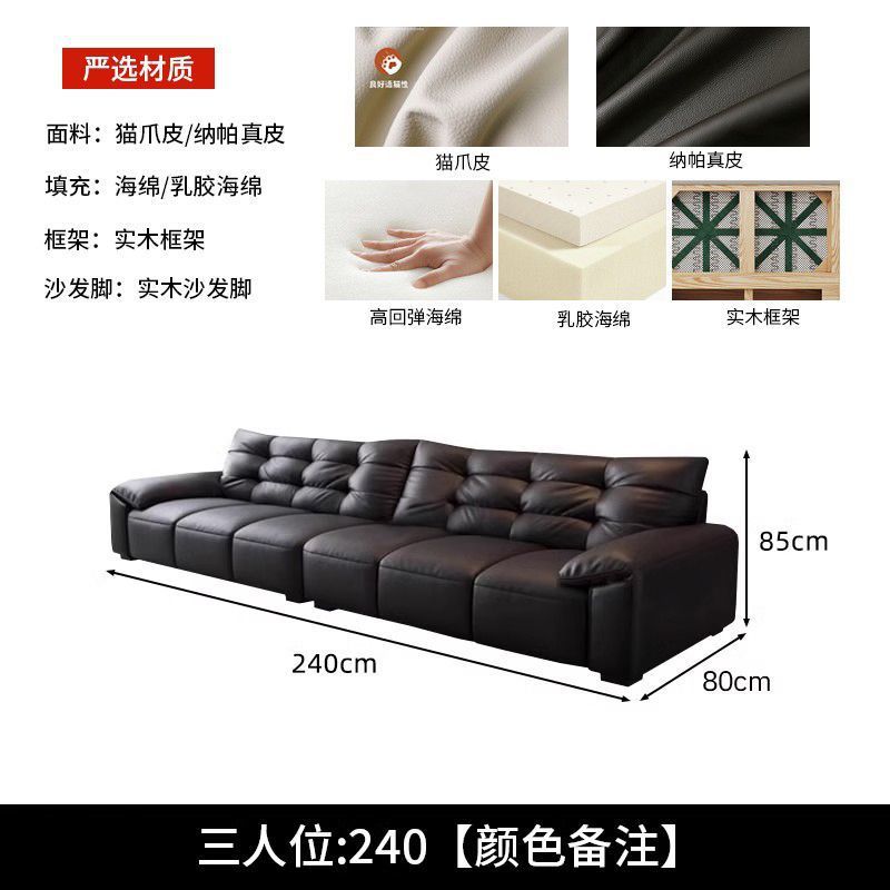 意式极简生态真皮沙发大黑熊轻奢家用客厅大小户型直排猫抓皮沙发